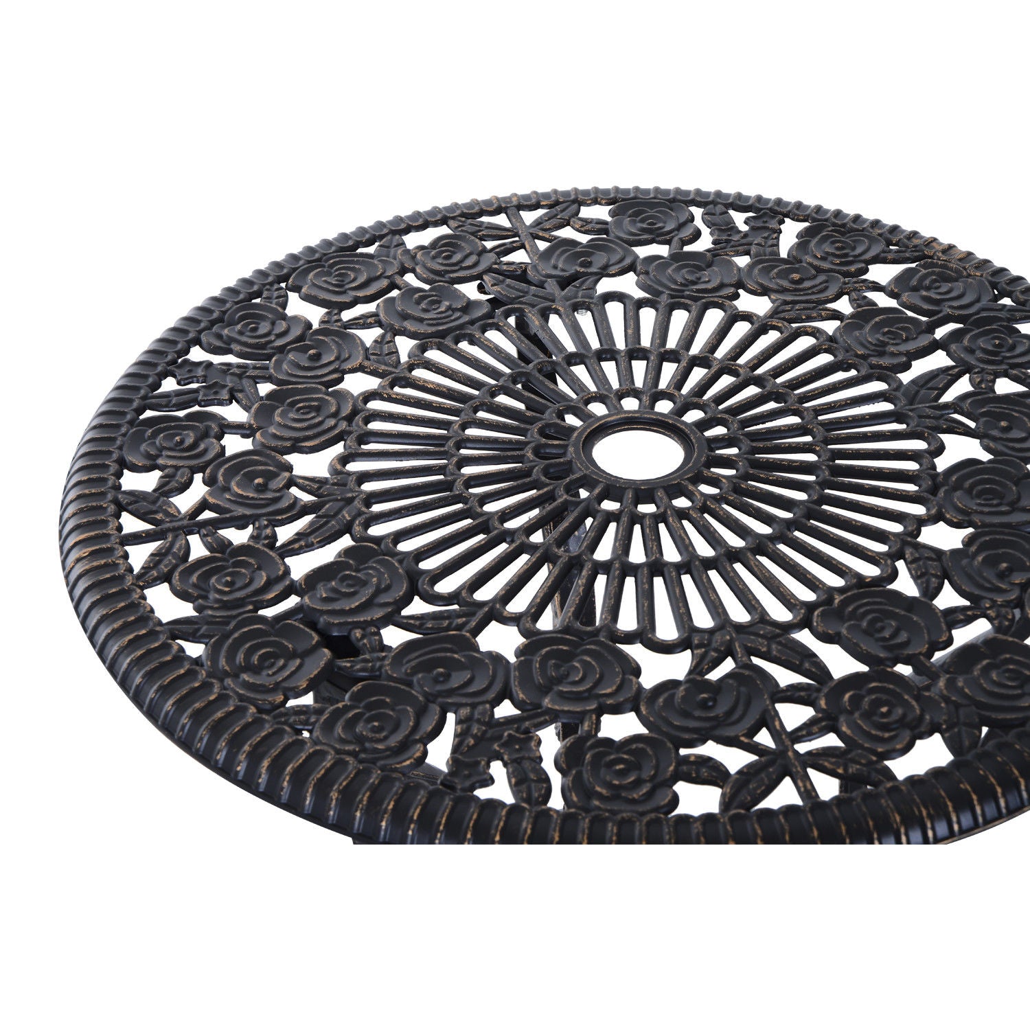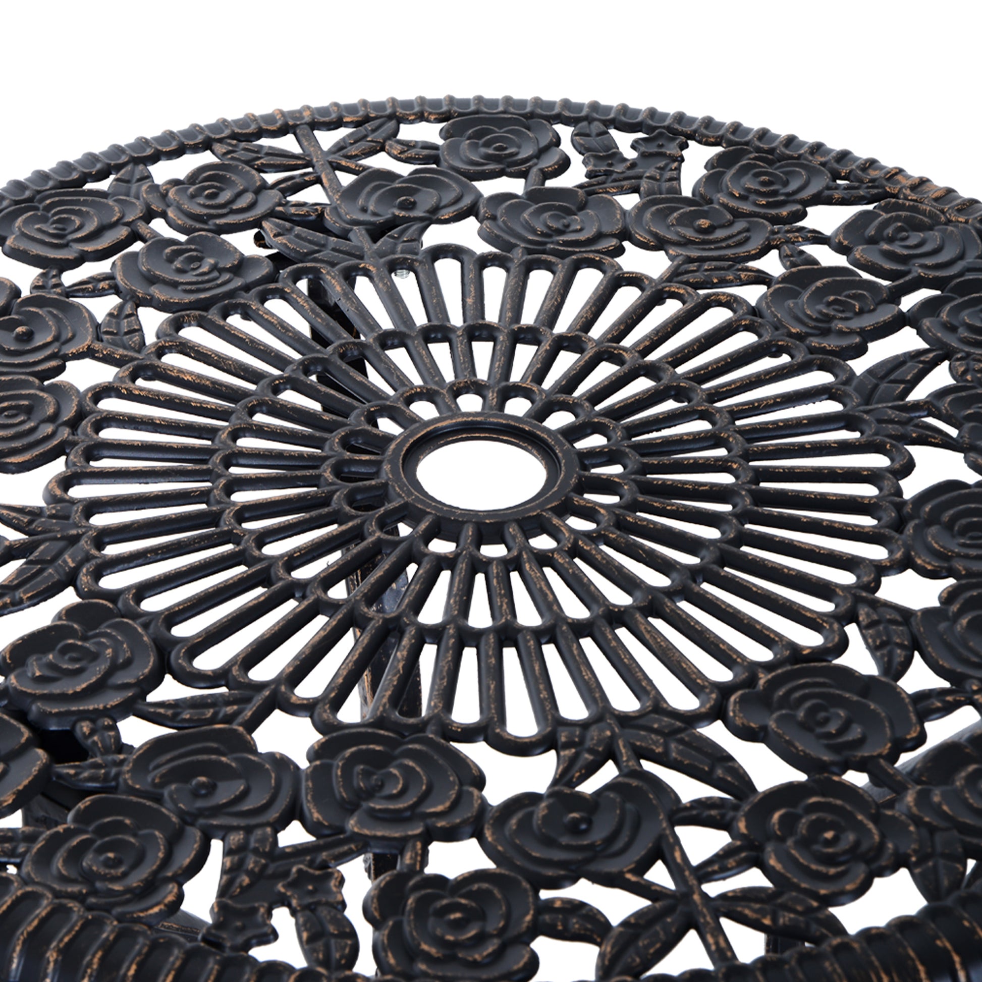 • - STYLISH AND ELEGANT: The cast rose pattern on the table and chairs is not only decorative but also gives the bistro set a lively, distinctive aesthetic.