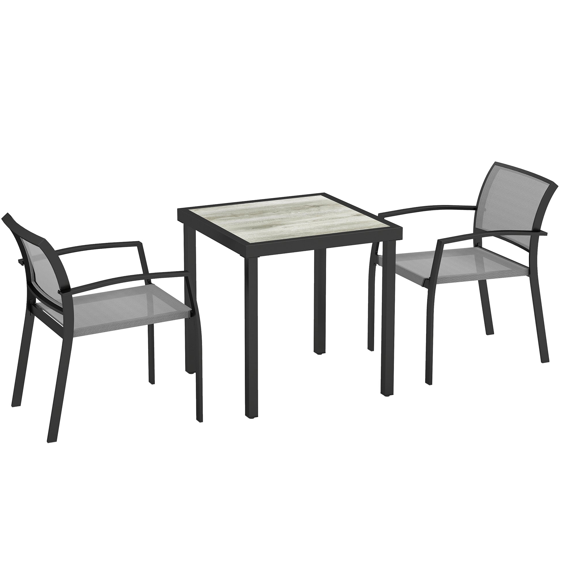 3 Piece Dining Group for 2 Persons Dining Table with 2 Stackable Chairs, Bistro Set Dining Room Set Kitchen Table Set with Steel Frame Balcony Furniture Garden Furniture for Terrace, Balcony Gray