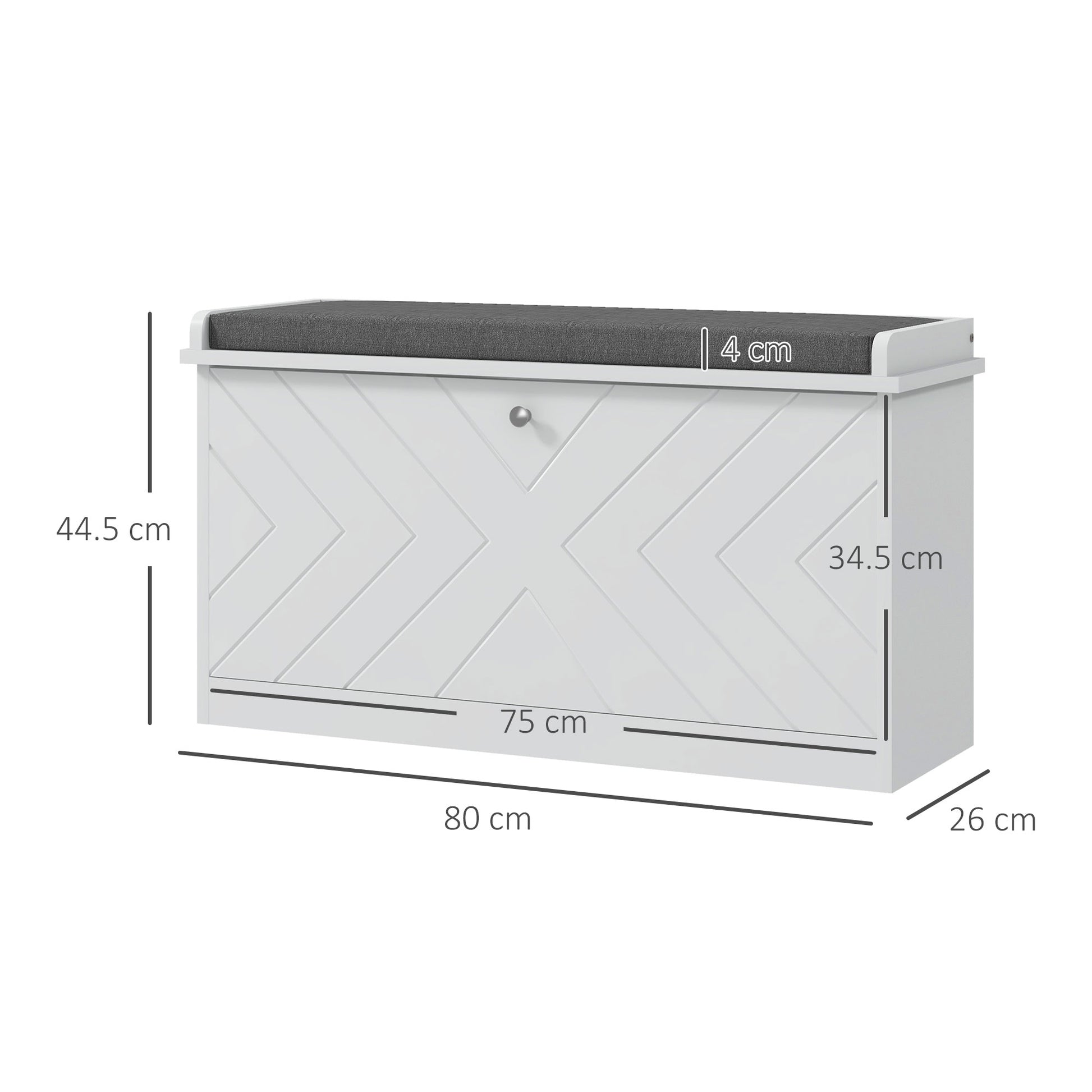 - - MODERN STYLE: Built with embossed lines and a round handle, this shoe storage bench with seat will easily blend in with the rest of your furniture and home decor. Despite its compact and narrow design, this white shoe bench offers generous storage capacity for keeping your shoes neatly organized. Its small size is perfect for maximizing space, being an ideal choice for small entryways and living rooms where every inch counts