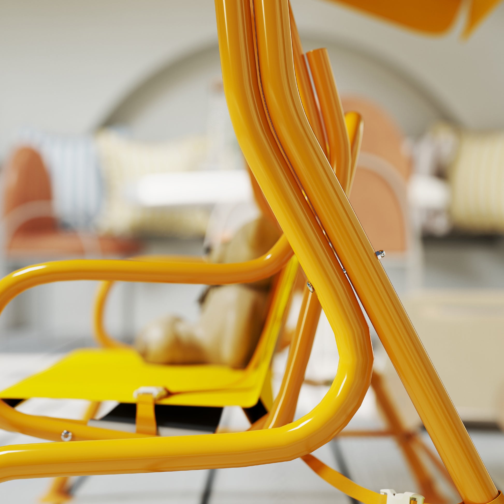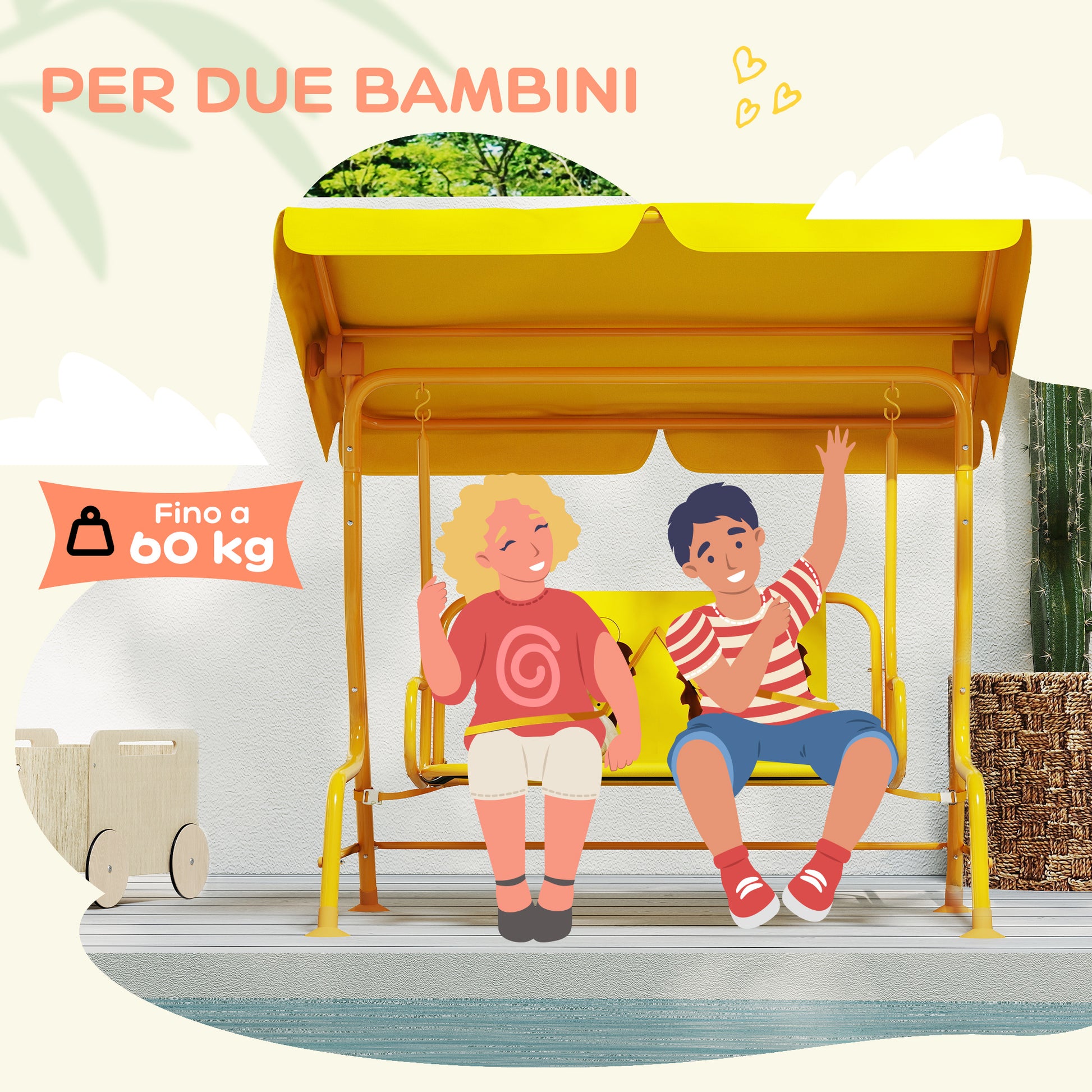 2-Seat Outdoor Children's Swing with Adjustable Sunshade and Safety Belts, Garden and Indoor Swing in Steel and Polyester, Max 60 kg, 112x75x120 cm, Yellow