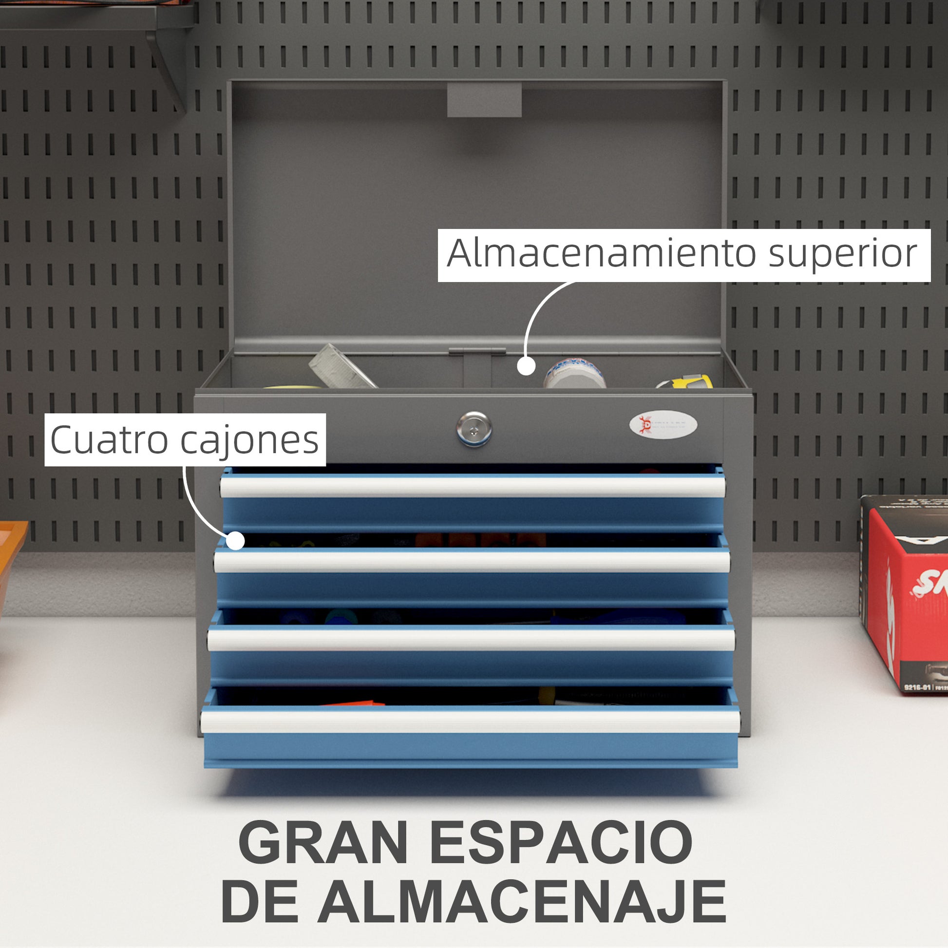 Metal Toolbox Tool Case with 4 Drawers Top Tray Lock and Side Handles Load 20 kg 45x24.5x32.5 cm Gray and Blue
