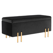 Upholstered Storage Bench Ottoman with Velvet Look, Storage Chest with Metal Legs, Chest Bench for Living Room Bedroom Entryway 100 x 40 x 42 cm, Black