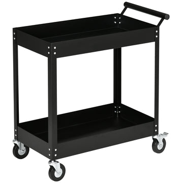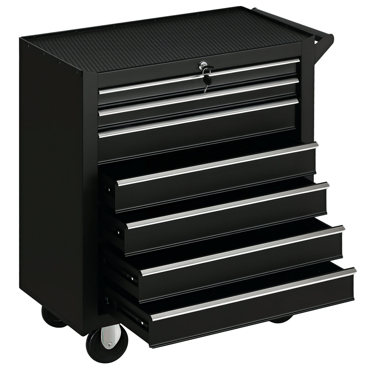Tool Cart with 7 Drawers, EVA Mats, Lock and 2 Keys, Braked Wheels and Handle, Steel for Garage, Black
