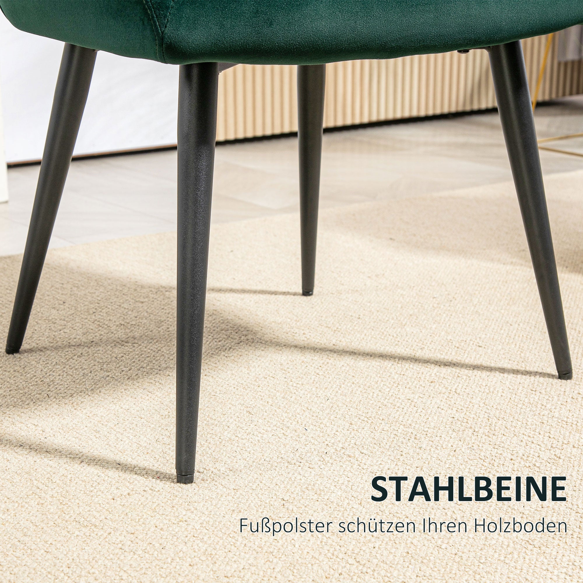 Armchair Lounge Chair with Armrest, Velvet Look, Upholstered Recliner with Steel Legs, Dining Chair for Living Room, Bedroom, Dark Green