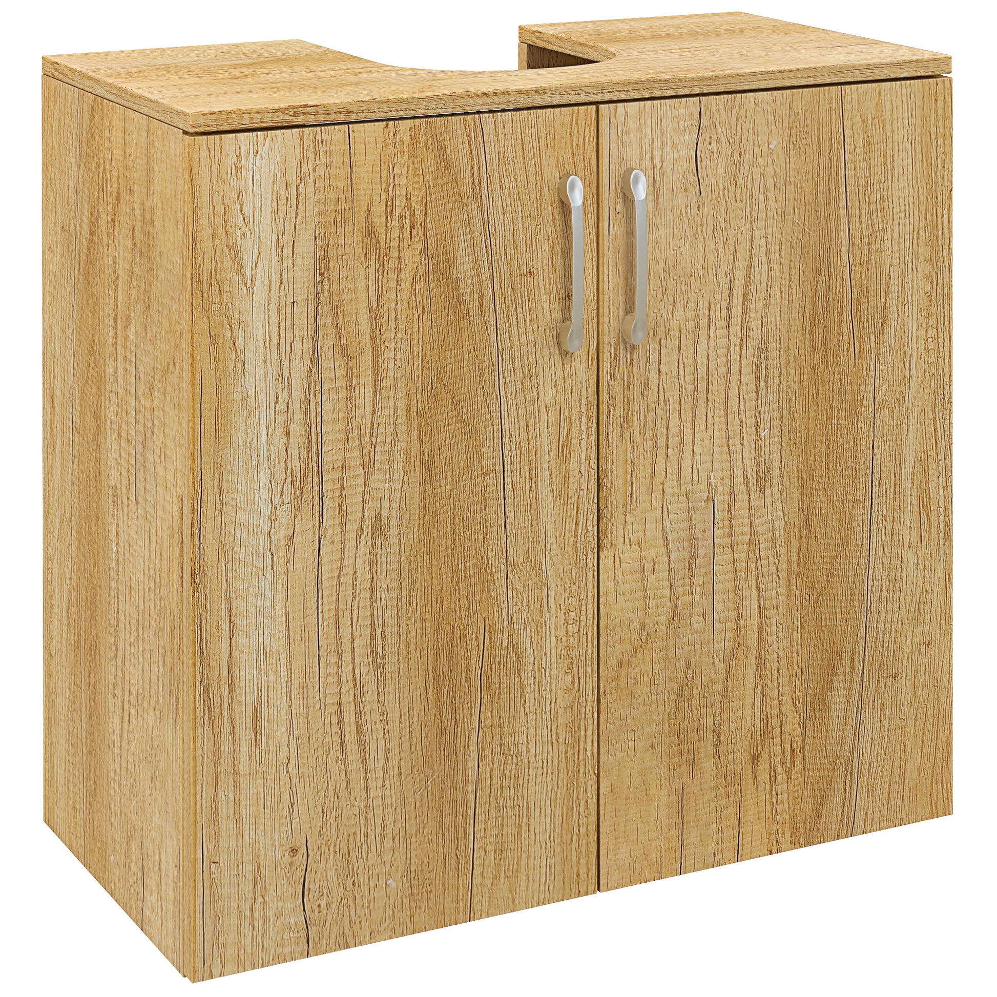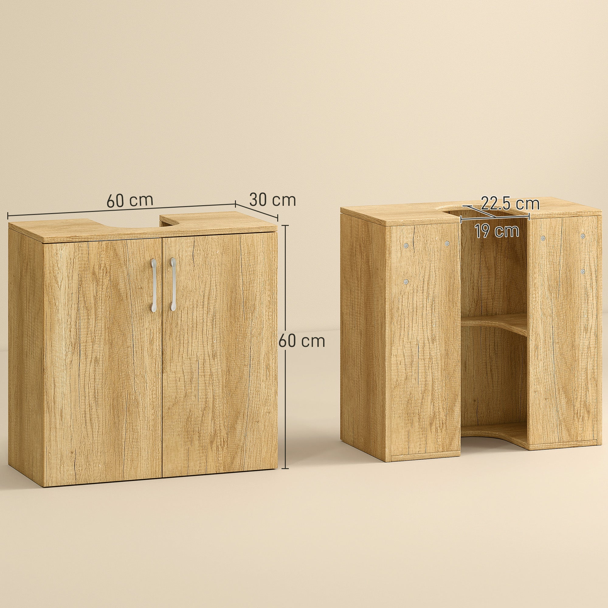 Modern Under-Sink Bathroom Vanity Unit, Wall-Mounted Cabinet with 2 Doors and 2 Shelves with U-Cutout in Wood, for Sinks with or without Pedestal, Natural Color