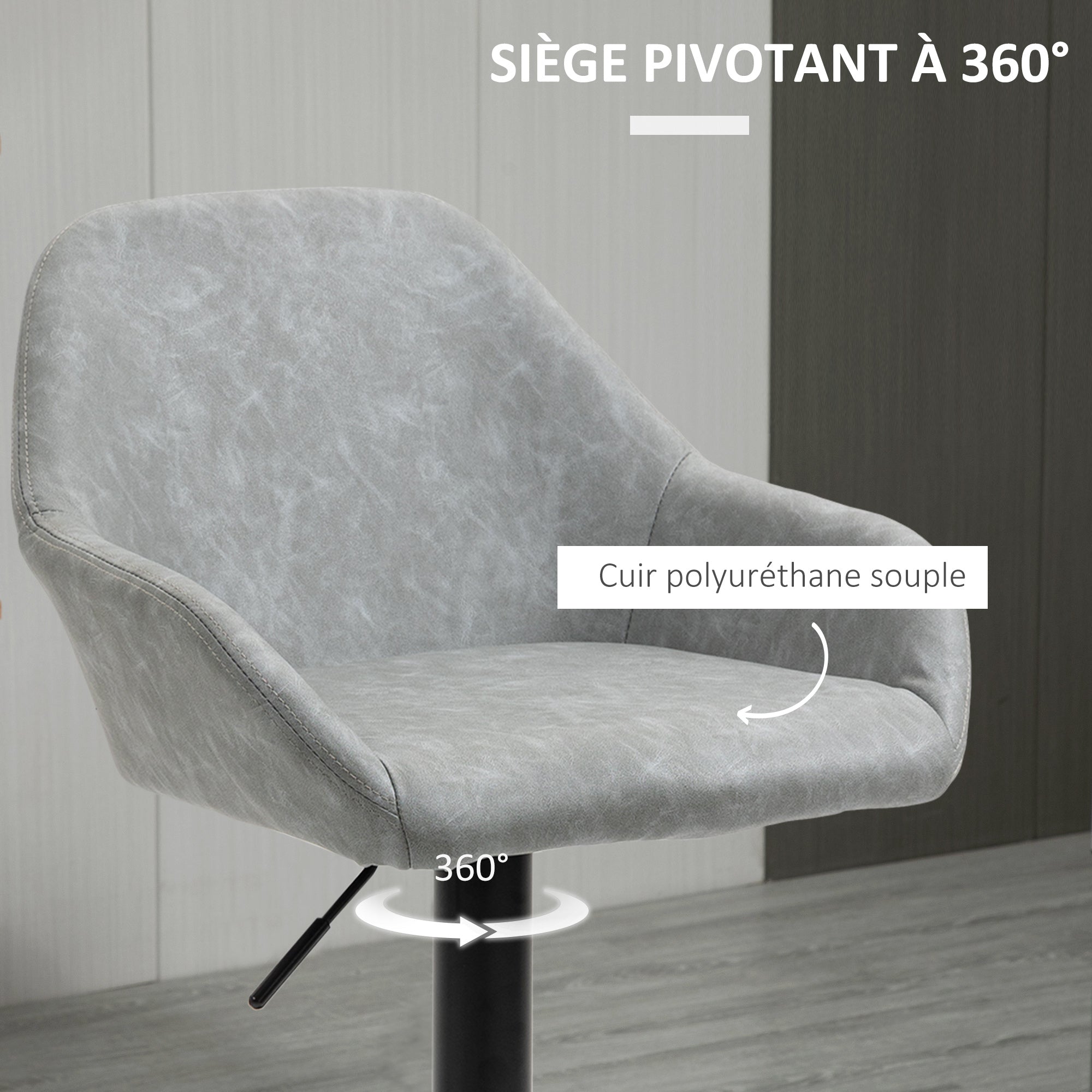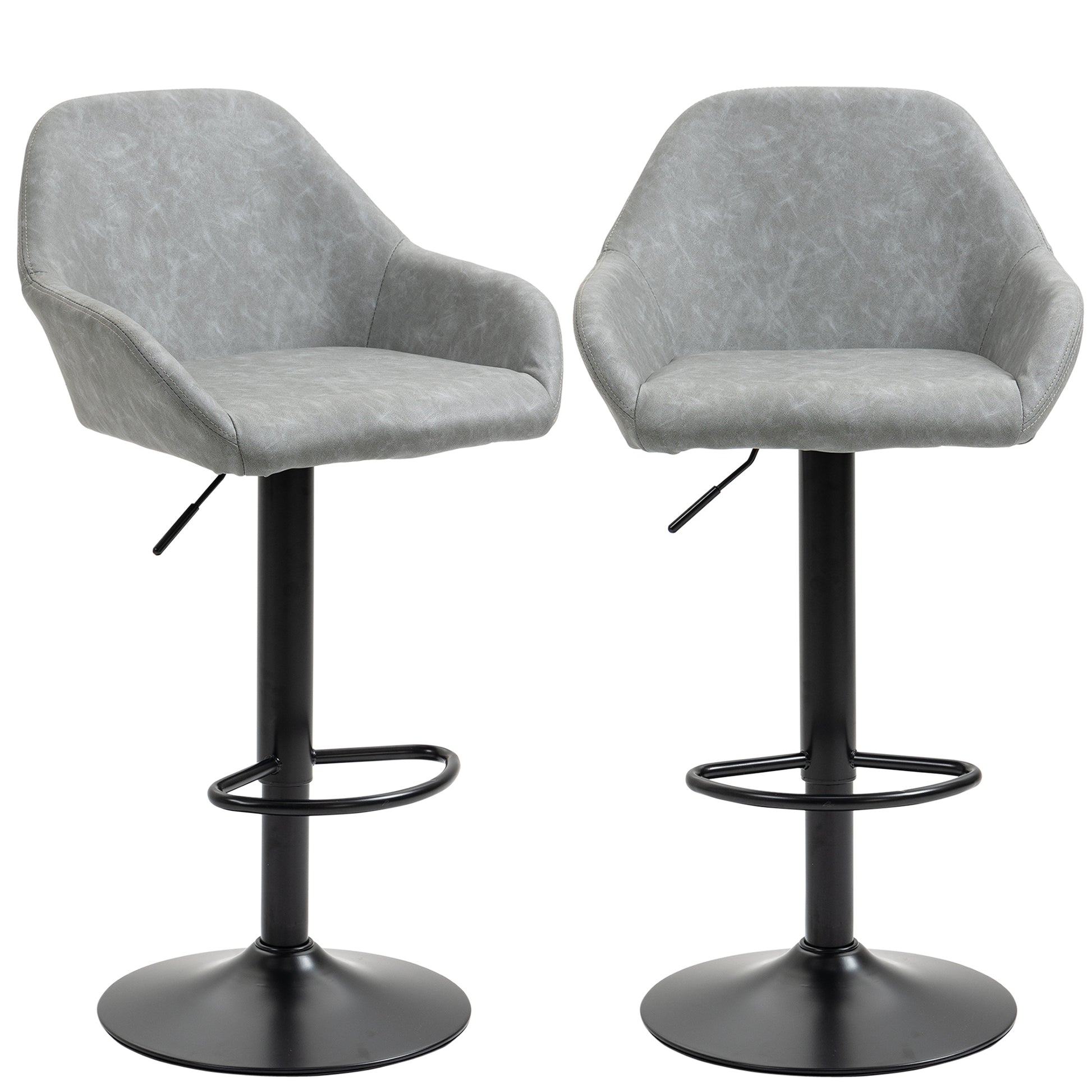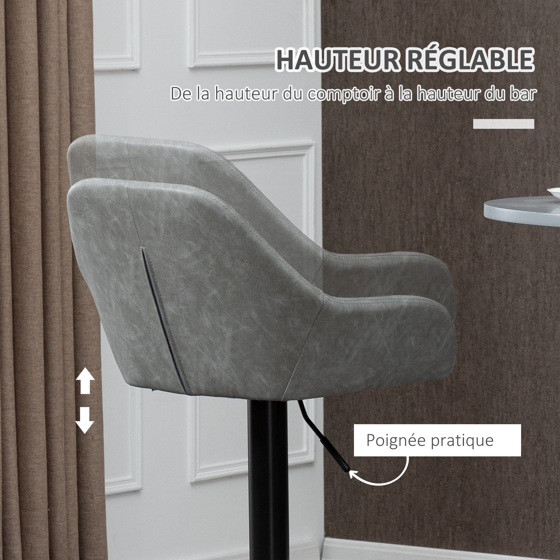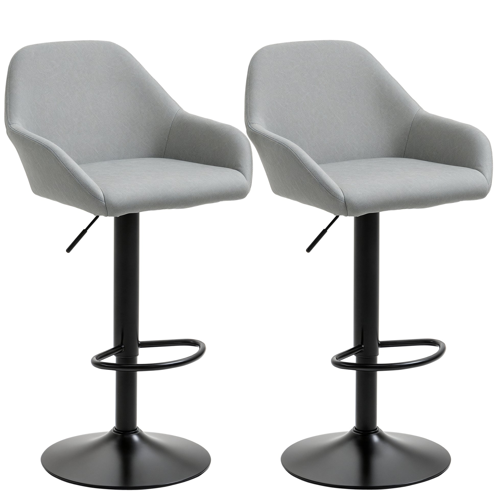 Set of 2 bar stools, modern bar chairs with backrest and footrest, adjustable and 360° swivel high kitchen chair, steel frame, for kitchen, counter, gray