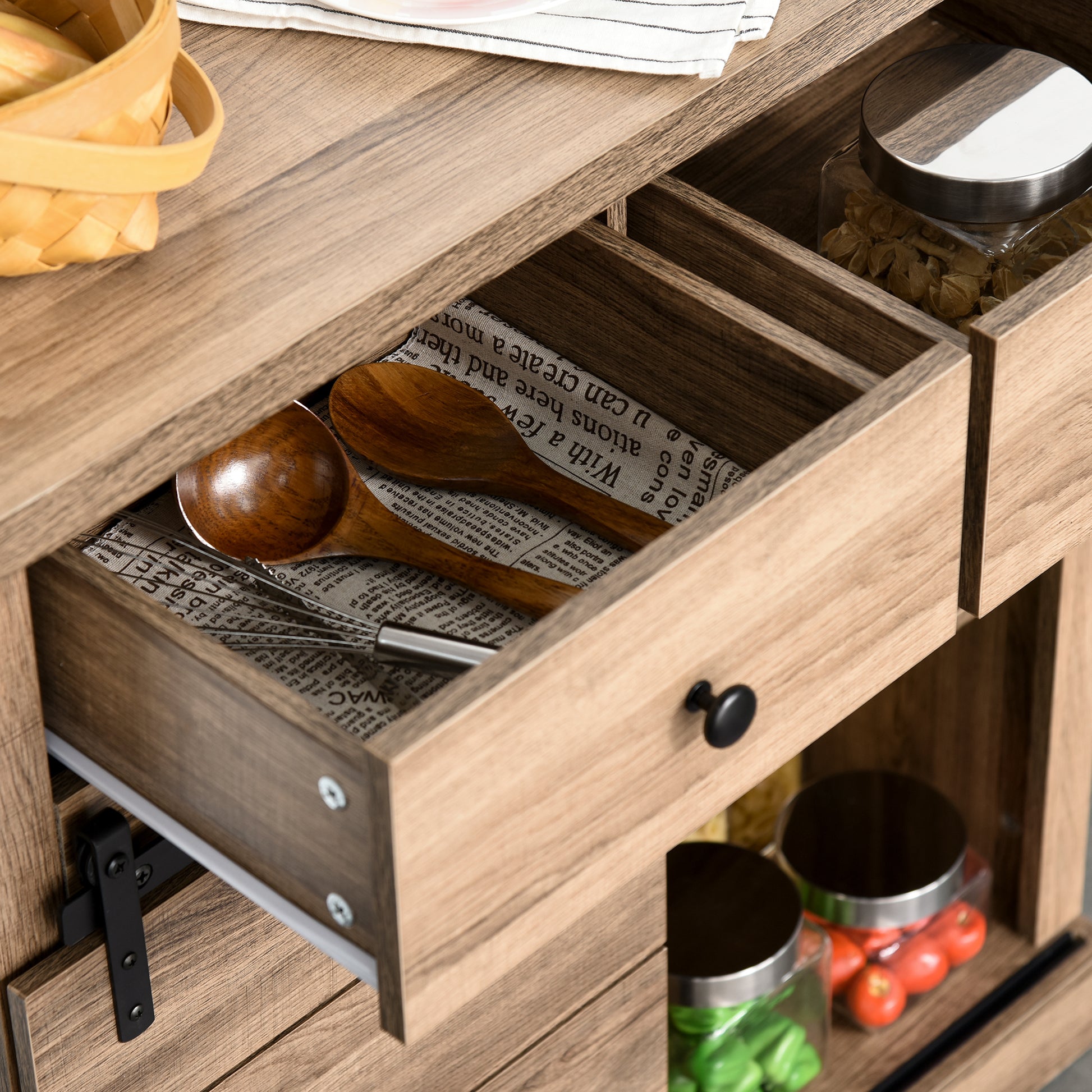- The buffet sideboard fits perfectly in dining rooms, kitchens, living rooms, etc.;