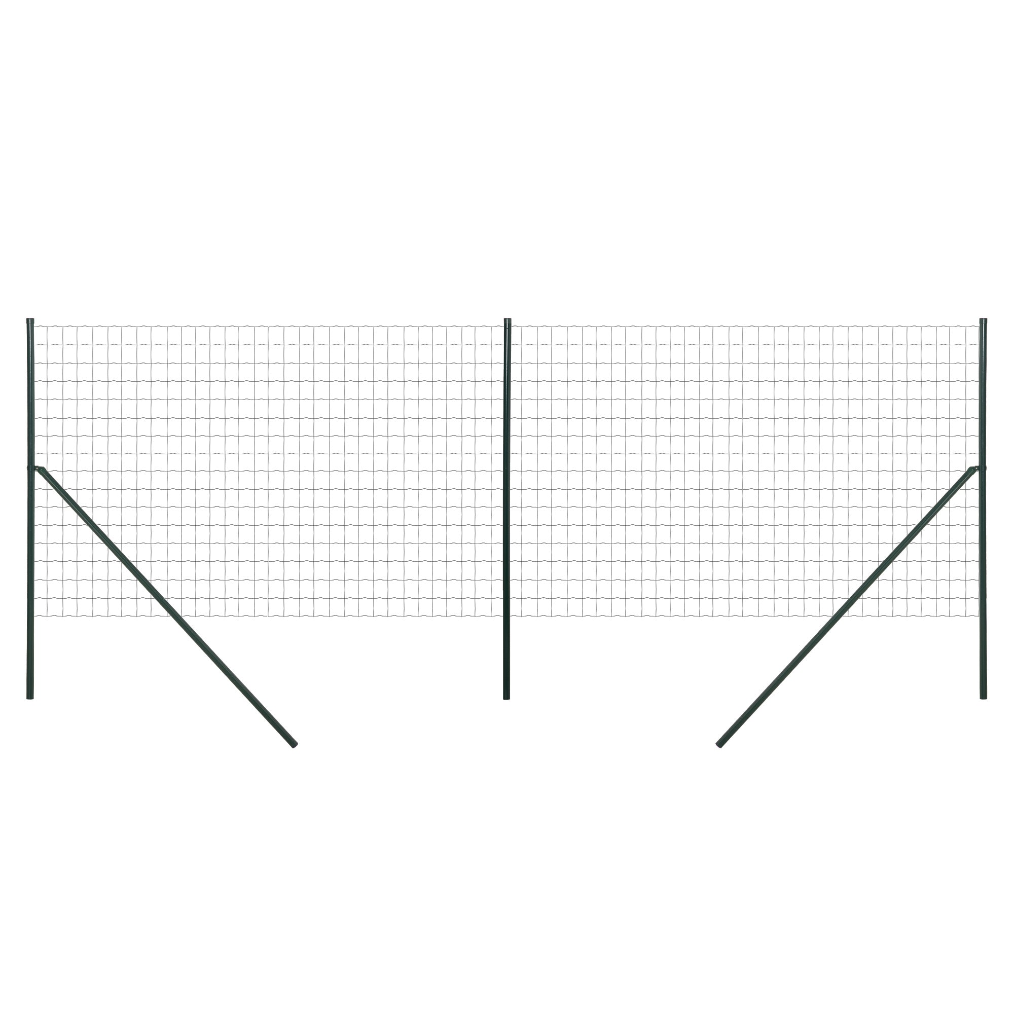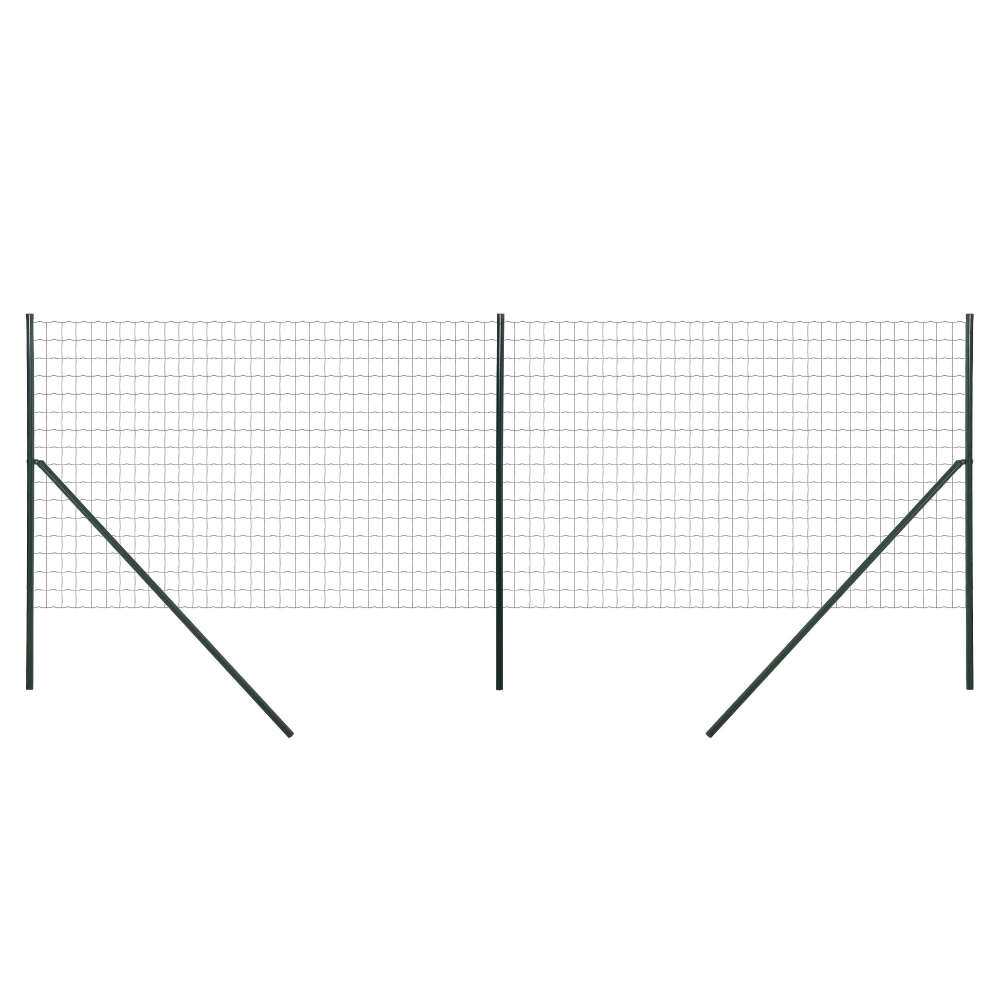 Welded Wire Mesh Roll - Mesh 7.3L x 6.3W cm - Height 2 m - Length 10 m - Posts, Brace Included - Steel with PVC Coating Green
