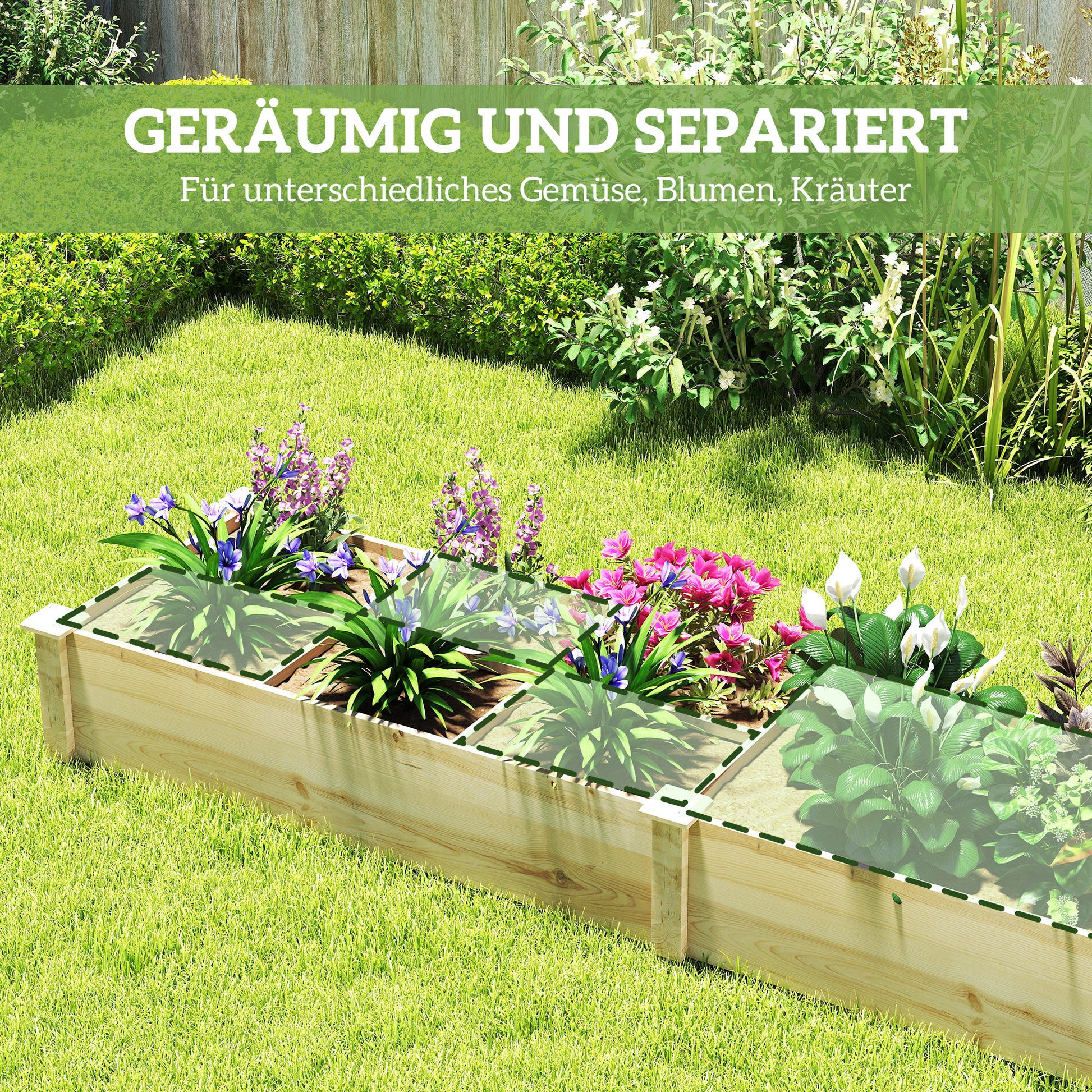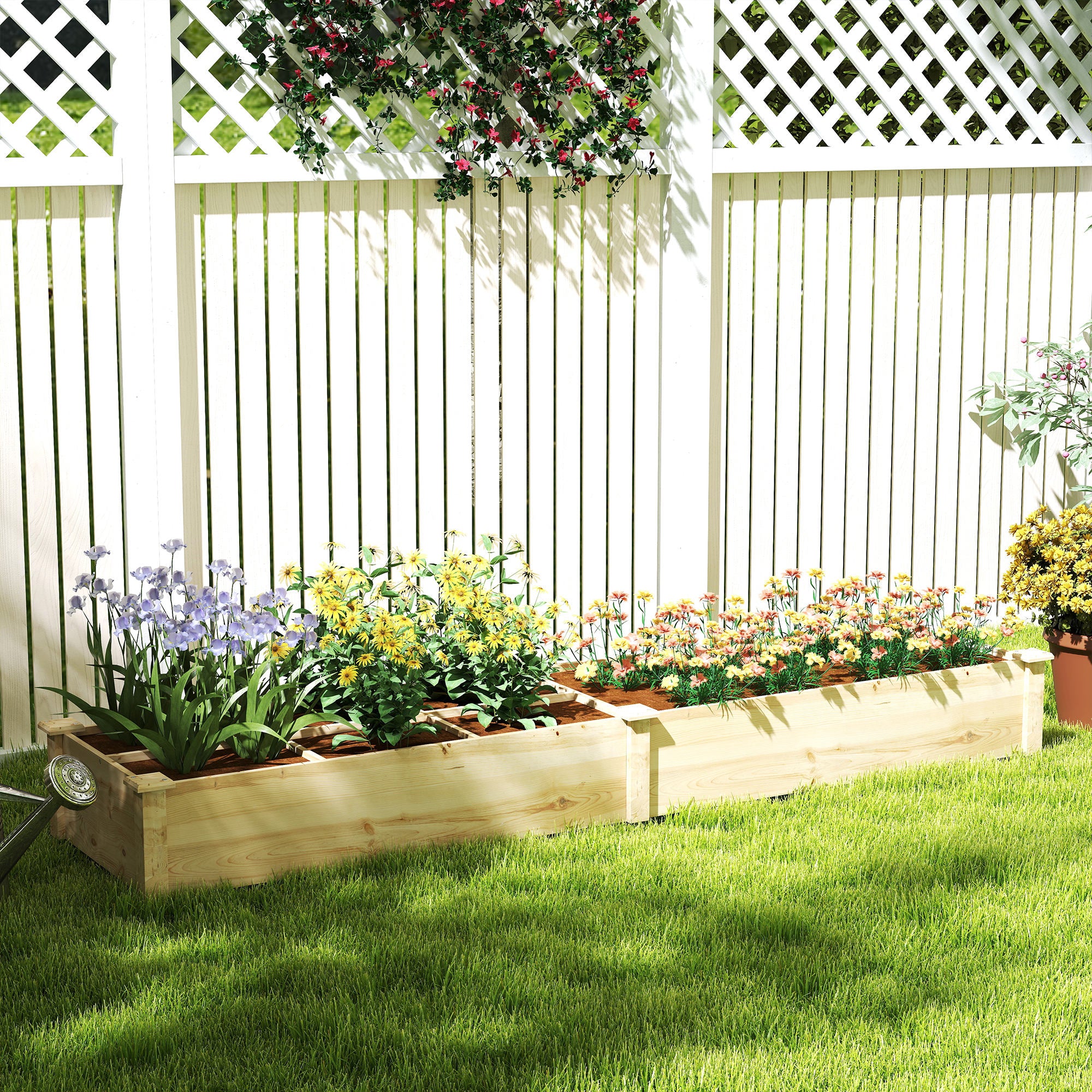 Wooden Raised Bed, Large Planter Box with 2 Compartments, Flower Box, Herb Bed, Vegetable Bed for Garden, Balcony, Natural, 237 x 60 x 25cm