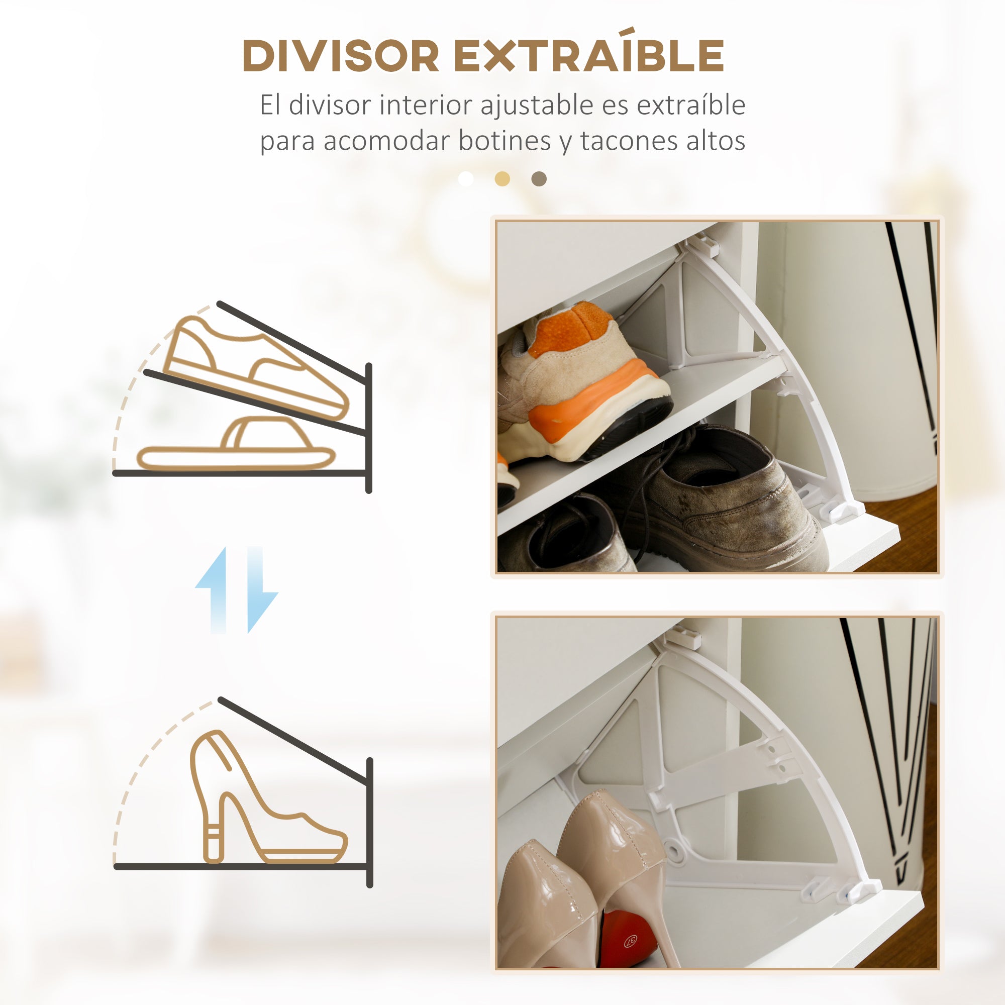 • - AMPLE STORAGE SPACE: This hallway shoe cabinet has 2 flip-down compartments with 2 levels that can store up to 12 pairs. Its interior is adjustable and features 2 drawers for small items, in addition to a spacious top shelf