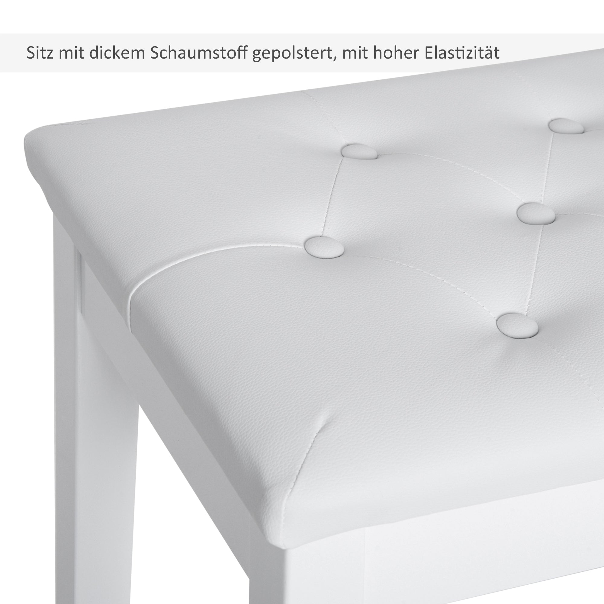 Piano Bench with Hidden Storage, Piano Stool with Faux Leather Cushion, Pianobench, Solid Wood Keyboard Bench for Piano, Keyboard, 76 x 36 x 50 cm, White