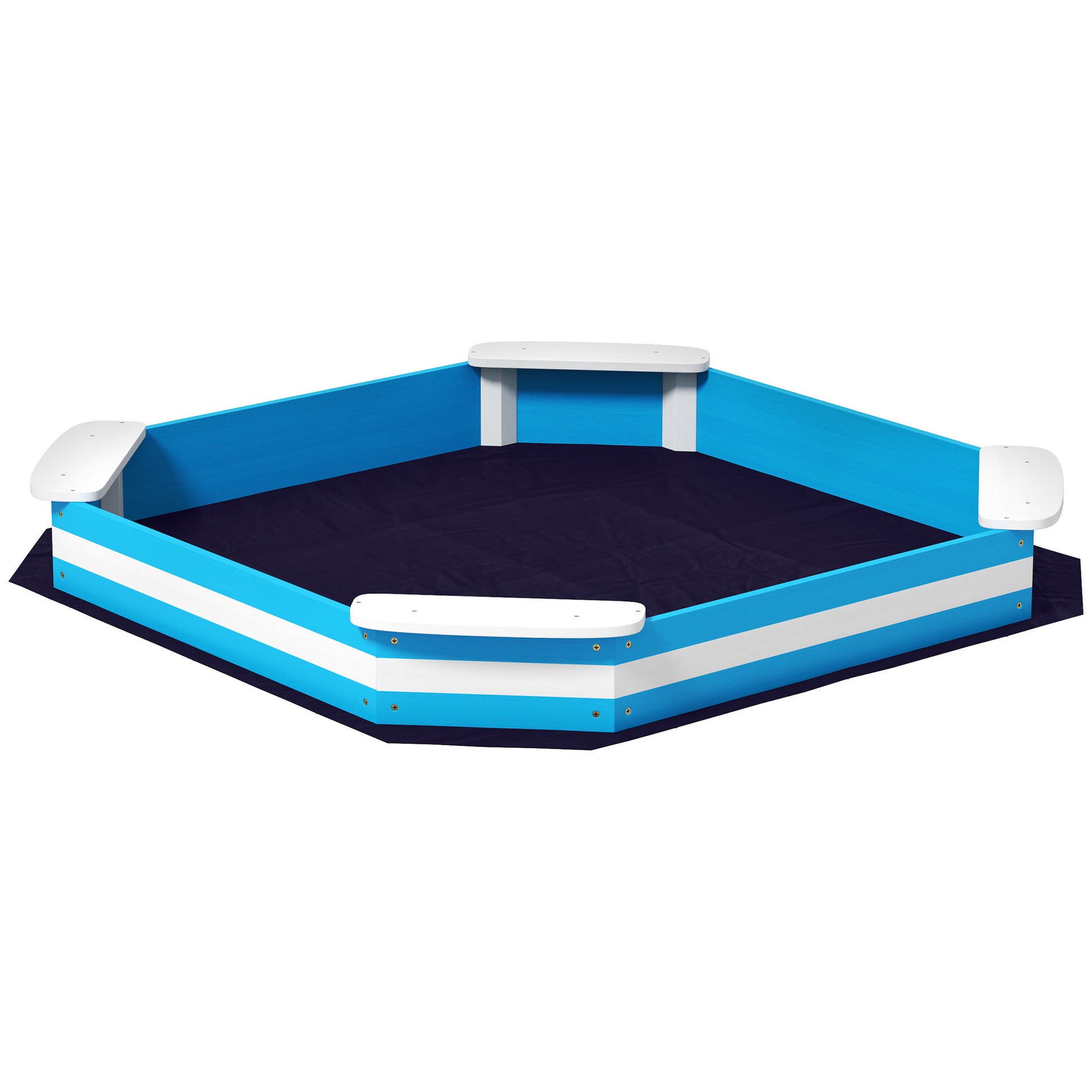 Sandbox 133 x 108 cm Wooden Sandpit with Bench, Groundsheet for 4 Kids 3-7 Years Blue