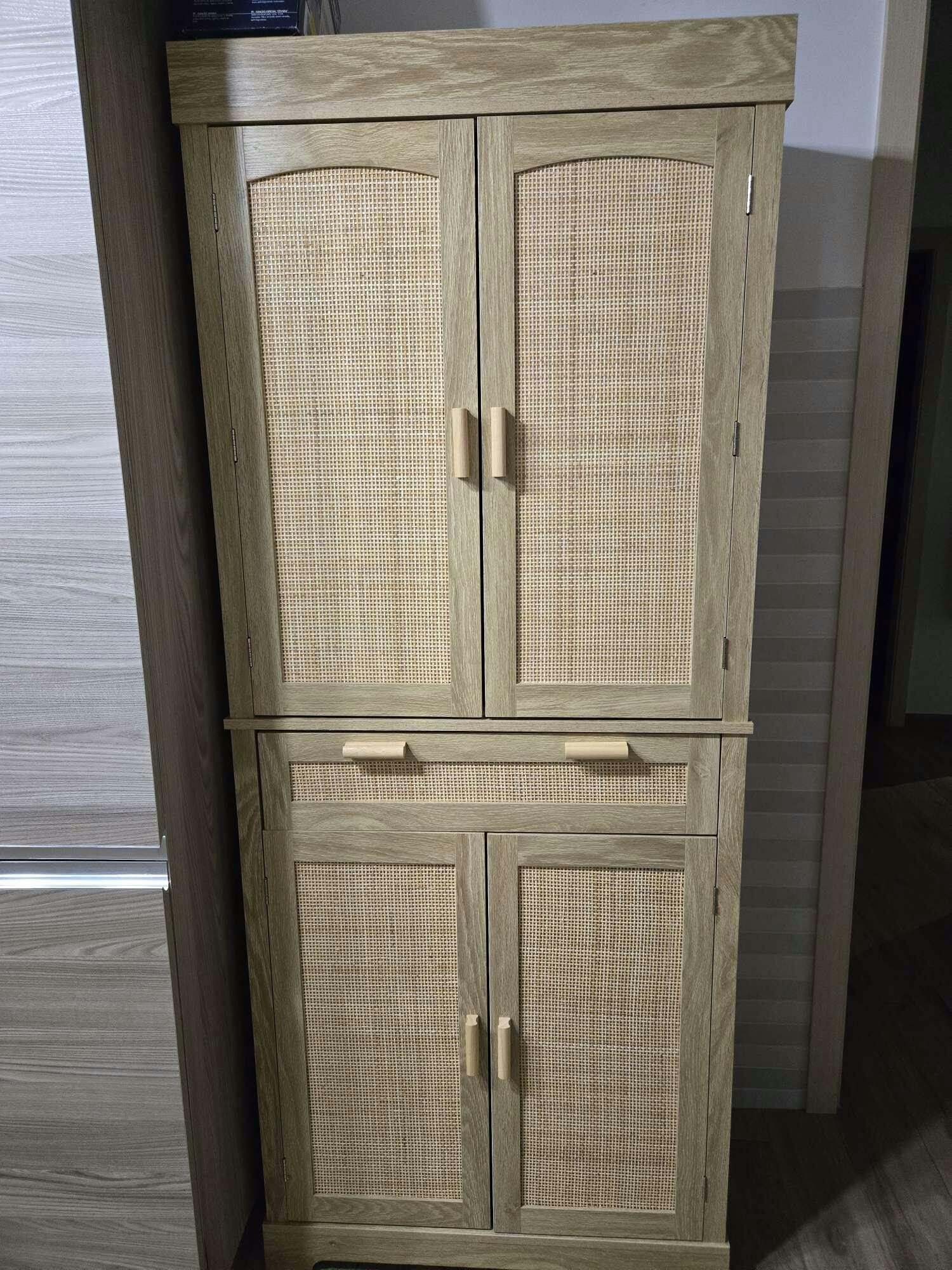 • - BOHEMIAN STYLE: Featuring an elegant woven rattan insert on doors and drawer paired with wooden handles, this kitchen cabinet adds a stylish touch to your decor