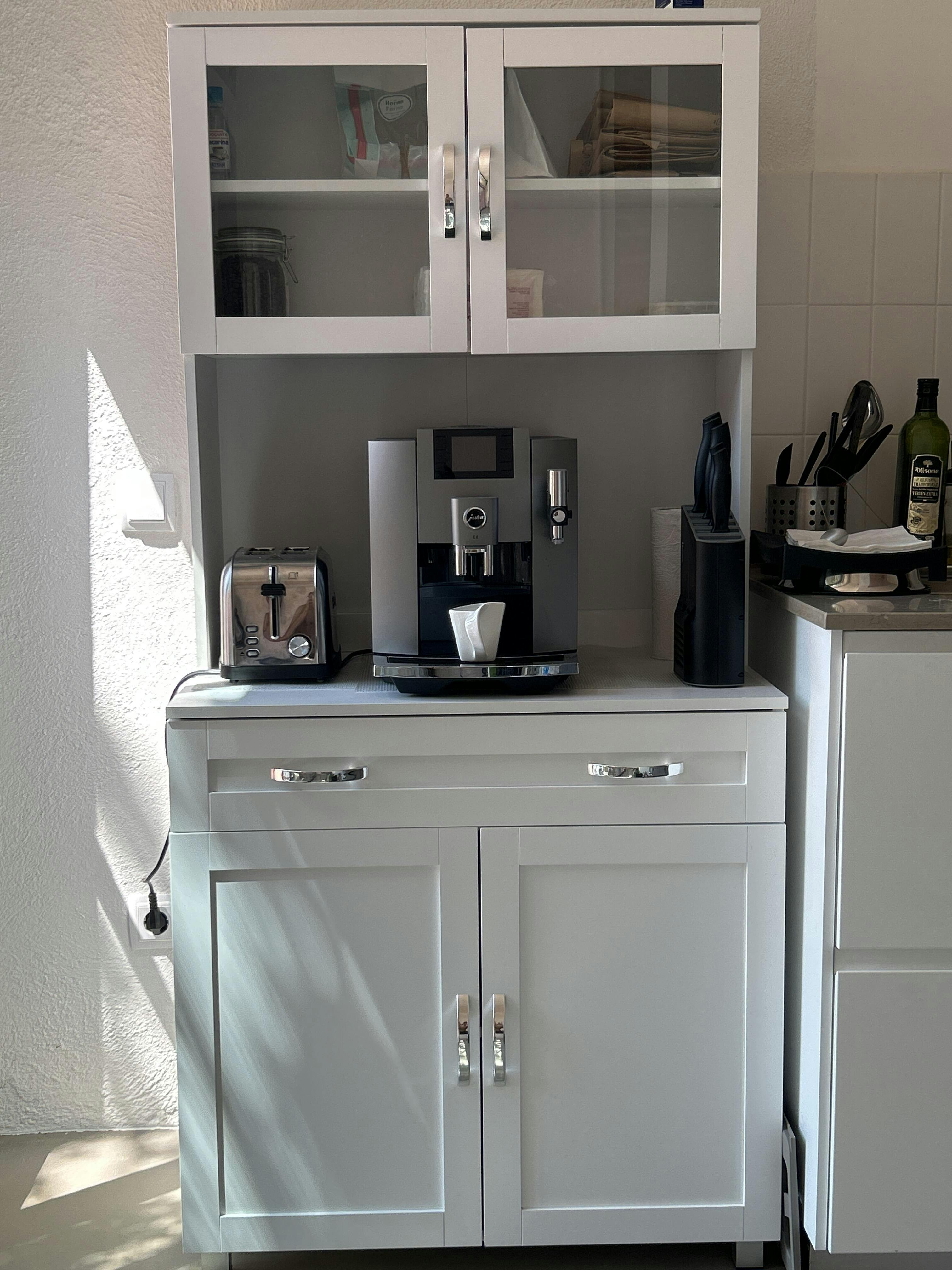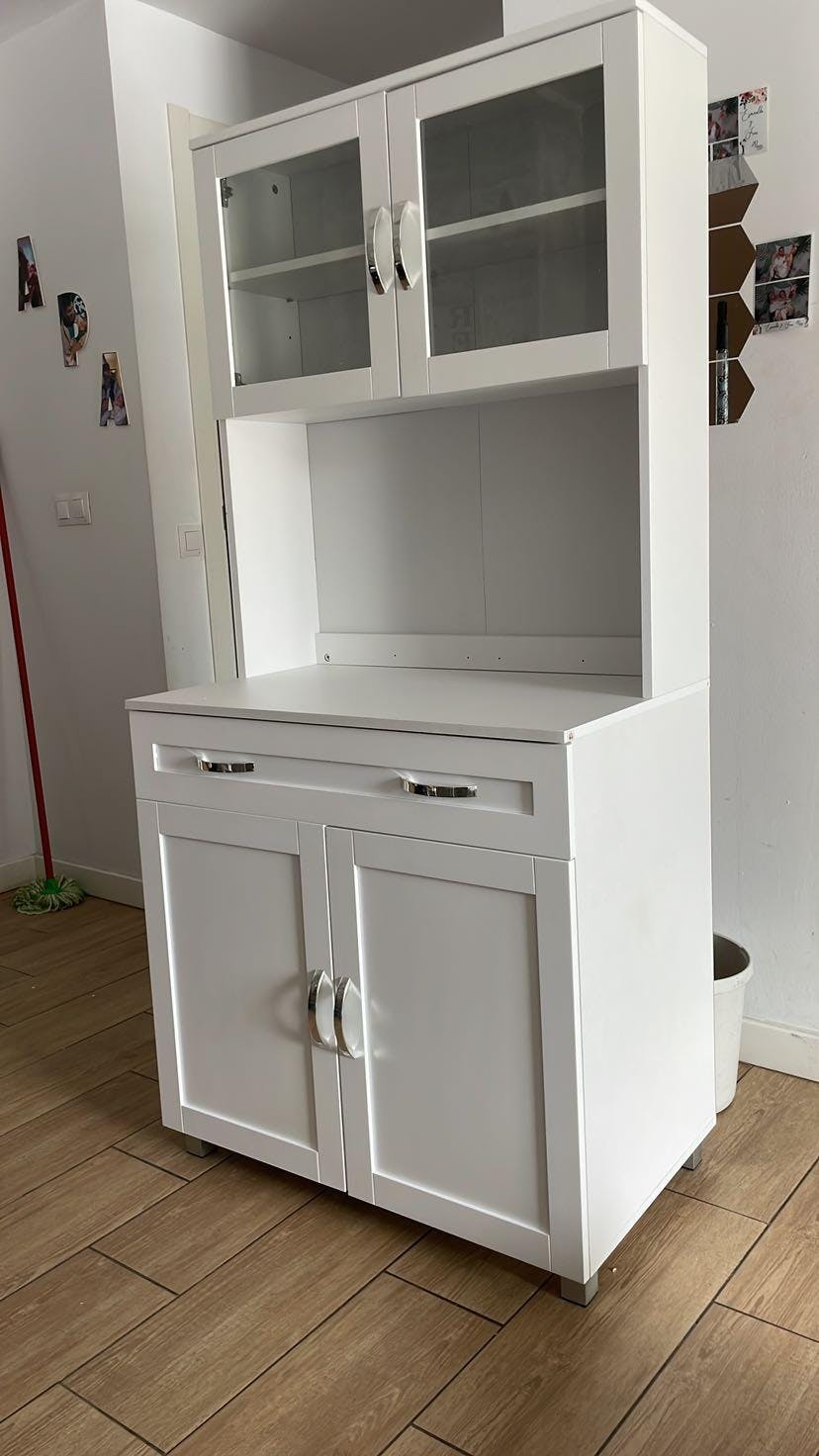 - - 2 GLASS DOORS: 2 framed glass doors add elegance to your kitchen design, allowing you to display your tableware or other precious objects and keep them dust-free.