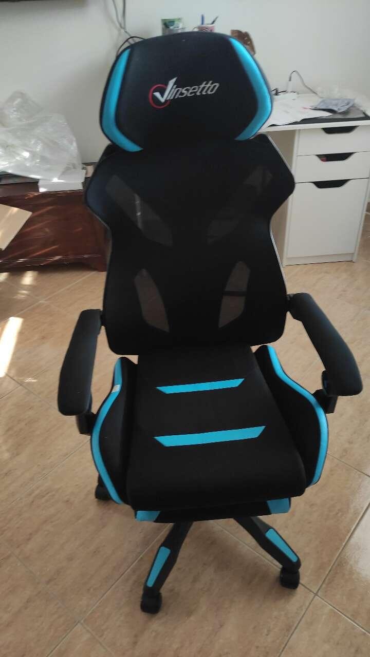 Gaming Chair with Lumbar Support, Ergonomic Office Chair with Adjustable Height in Black and Blue Fabric, 65x65x119-129cm