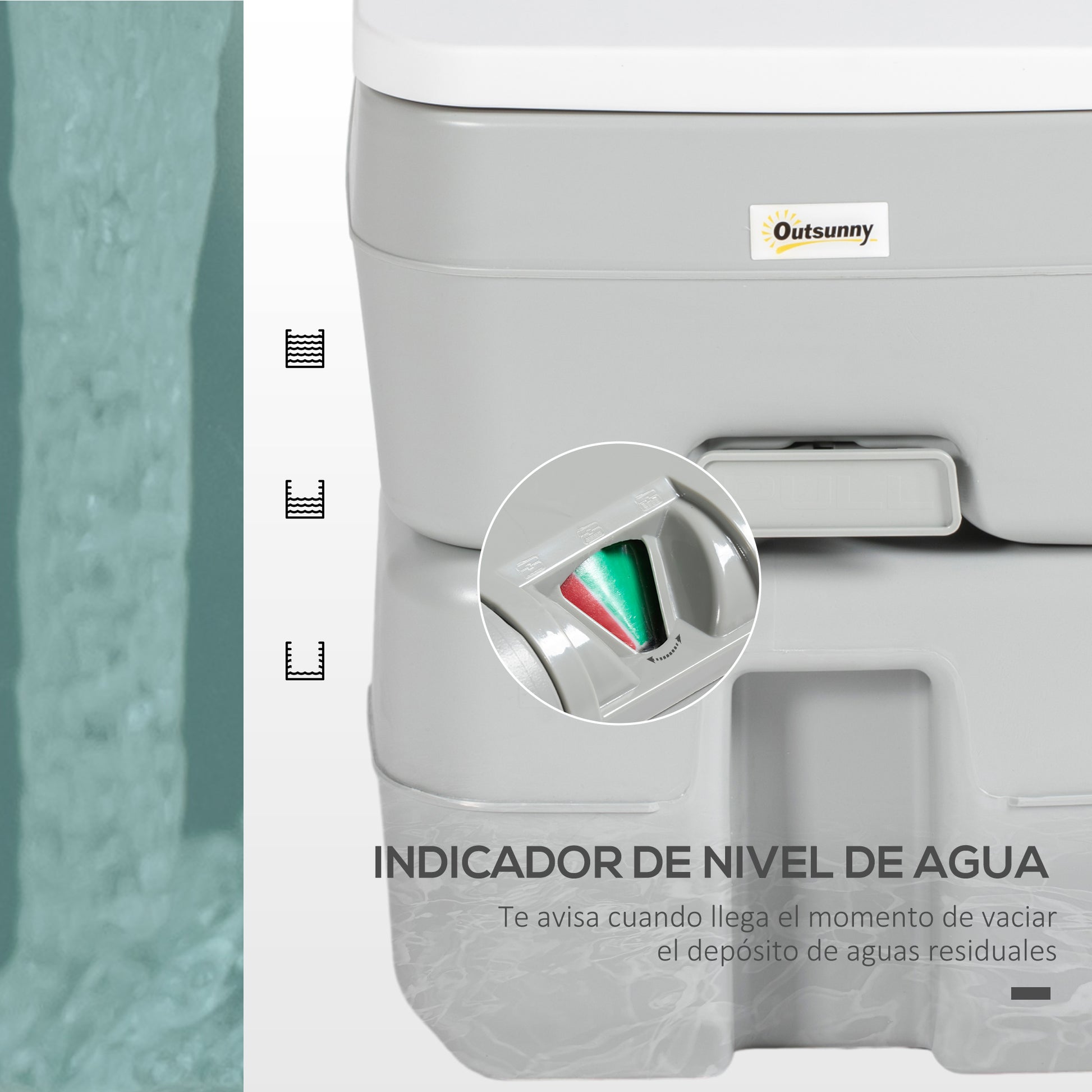 - - PORTABLE TOILET FOR CAMPING WITH WATER LEVEL INDICATOR: This portable camping toilet comes equipped with a 10 L clean water tank and a 20 L wastewater tank, ensuring its multiple use during camping trips. The liquid level indicator lets you know when it's time to empty the wastewater tank