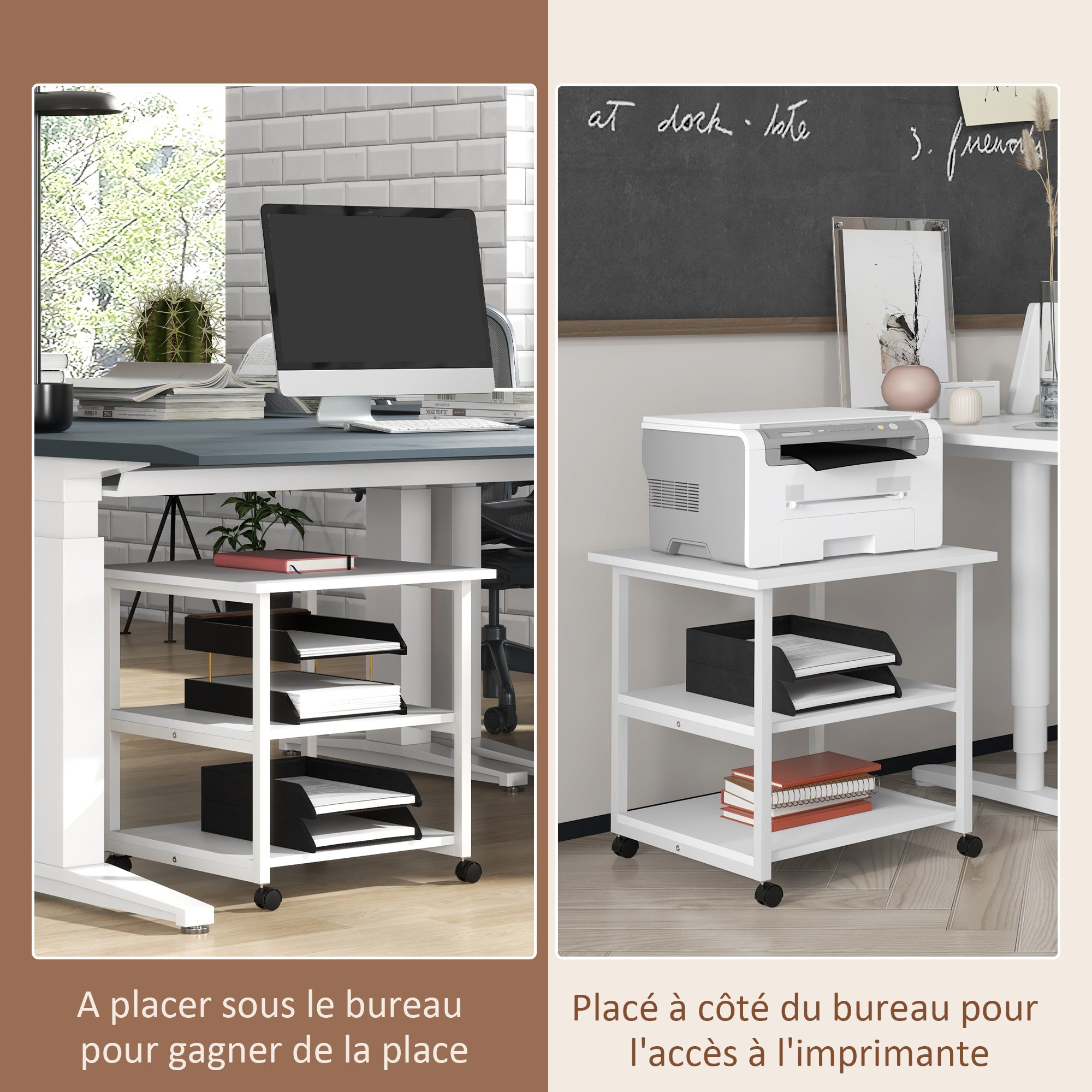 Printer Stand Storage Cart 3-Tier Shelves Mobile on Wheels 50 x 50 x 52.5 cm White