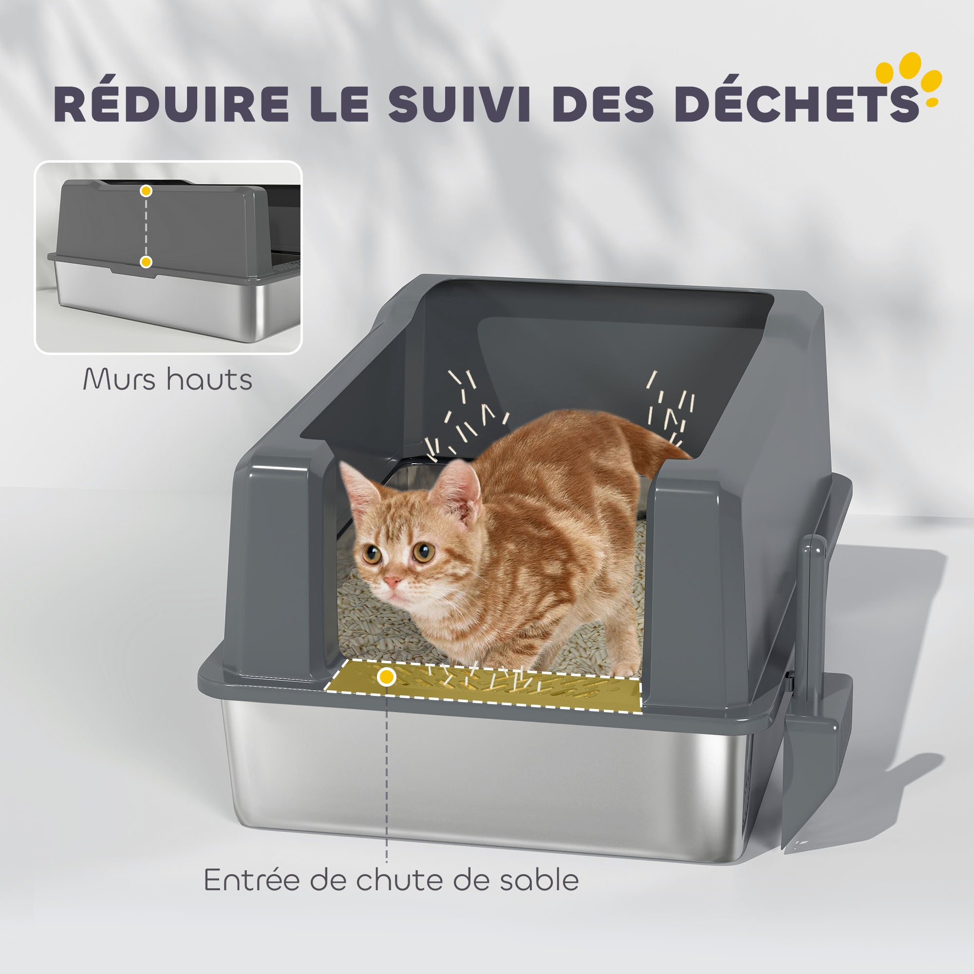 - - STAINLESS STEEL COMFORT: Enjoy easy cleaning and perfect hygiene with this cat toilet, equipped with a stainless steel tray and included scoop