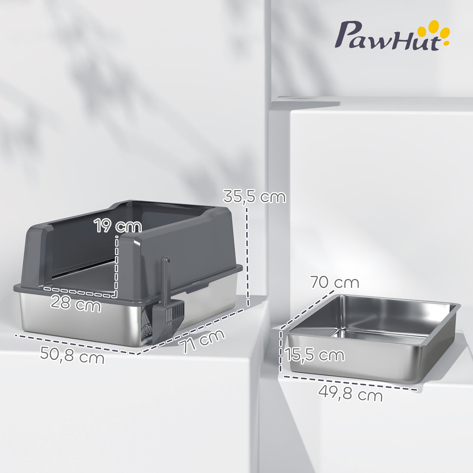 XXL Stainless Steel Cat Litter Box, 85L Large Capacity, Semi-enclosed Cat Toilet House, with Scoop and Non-slip Pads, Easy to Clean, 71 x 50.8 x 35.5 cm, Gray