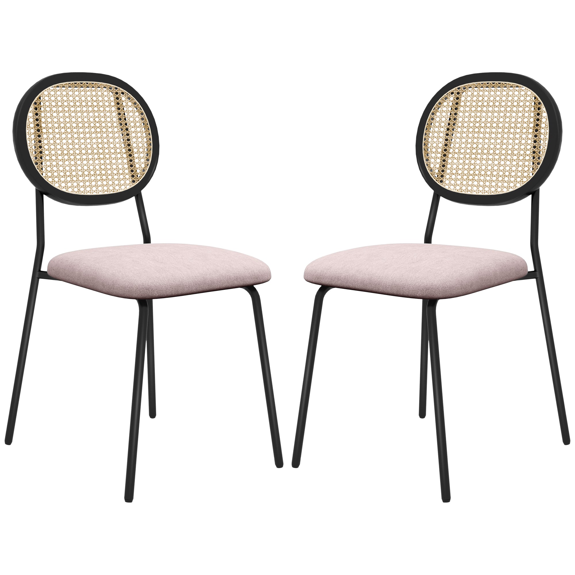Pack of 2 Dining Chairs Kitchen Chairs with Synthetic Rattan Backrest and Steel Frame for Living Room 44x54x87 cm Pink and Black