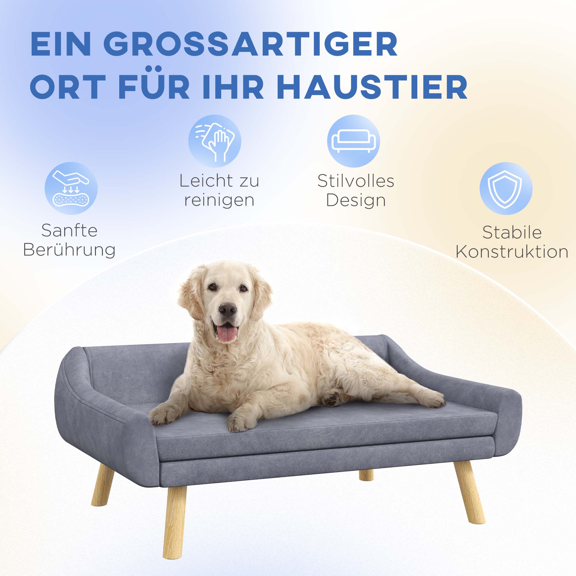 Dog Sofa Cat Sofa with Backrest, Pet Couch with Wooden Legs, Pet Sofa with Cushion, Dog Bed for Medium and Large Dogs, Velvet, Grey, 102 x 58.5 x 42.5 cm