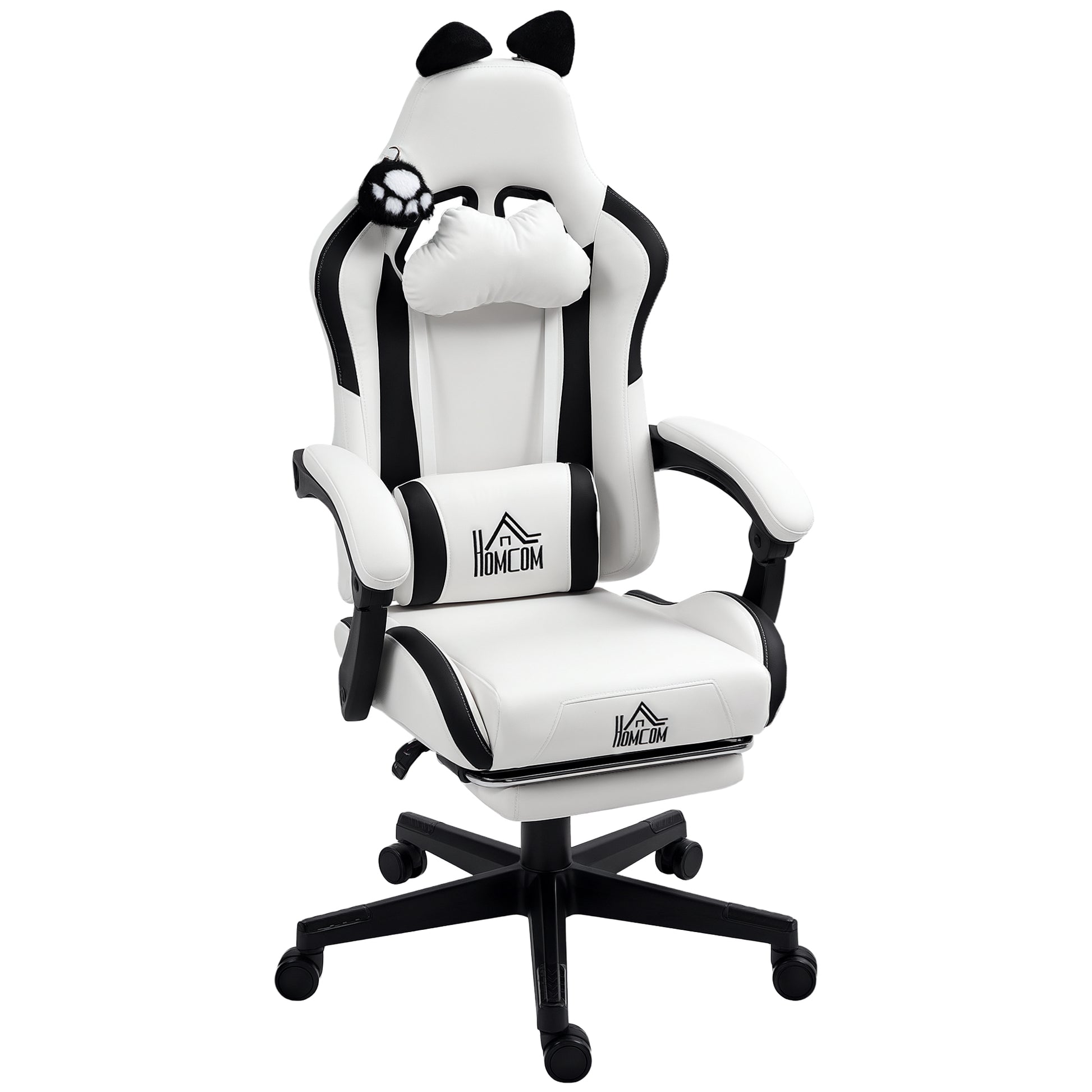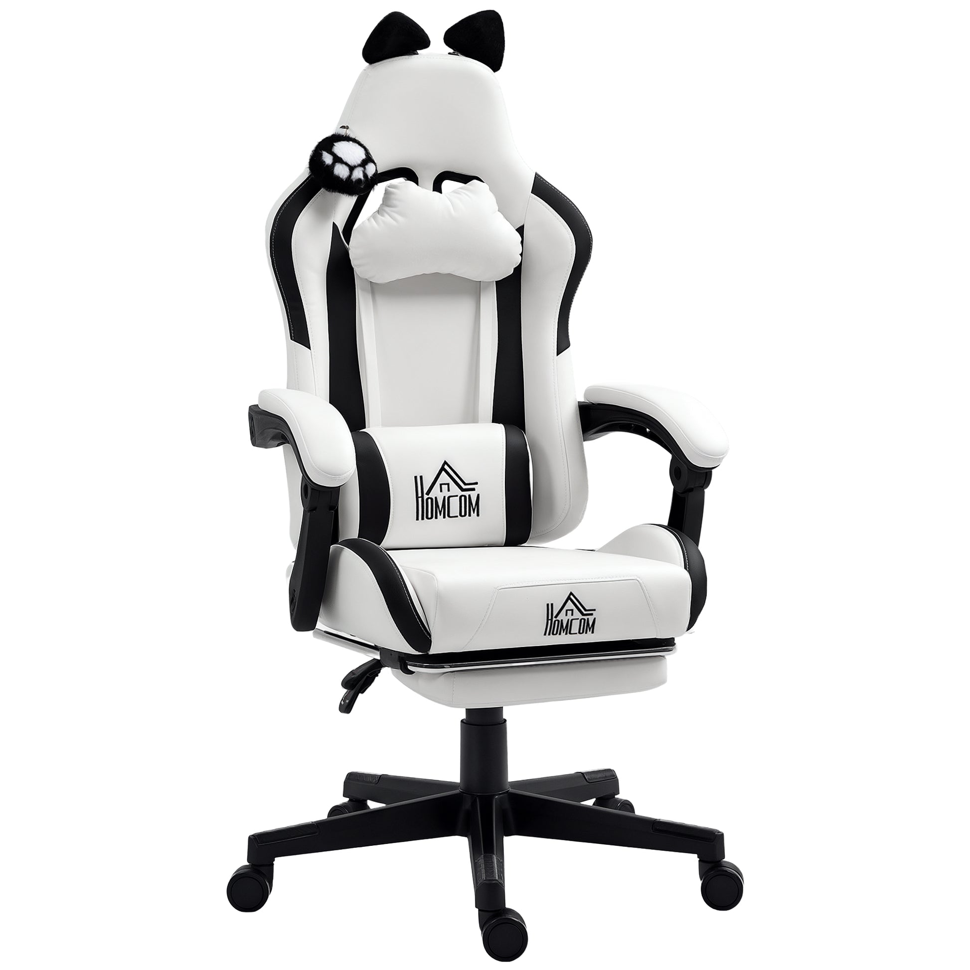 Gaming Chair with Cat Ears Reclining Gamer Chair with Adjustable Height Retractable Footrest Lumbar Support and Detachable Headrest Chair for Office Study White