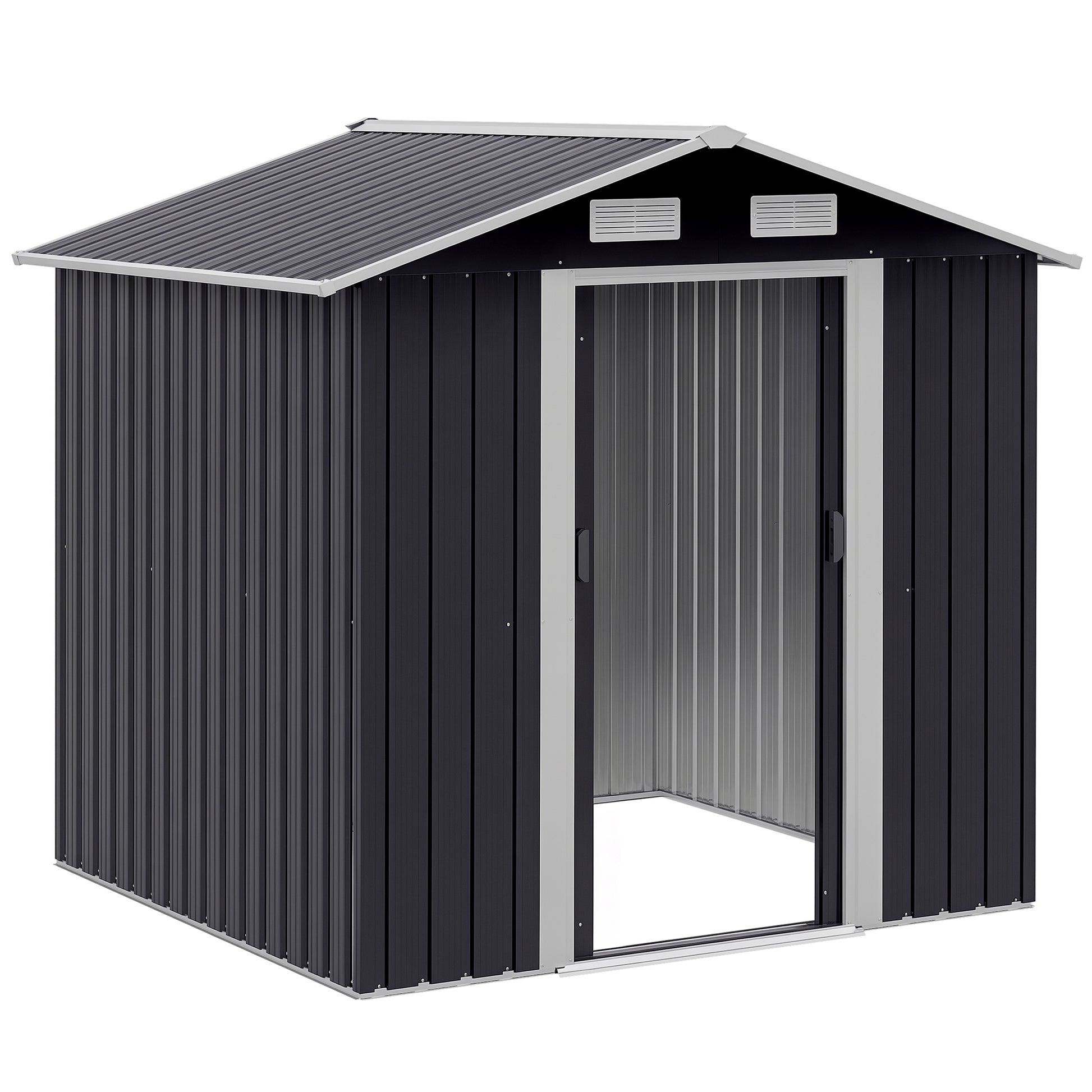 Garden Shed 2.6m?, Galvanized Steel Tool Storage with Double Sliding Door and 4 Air Vents, 195.5x153x188cm, Black