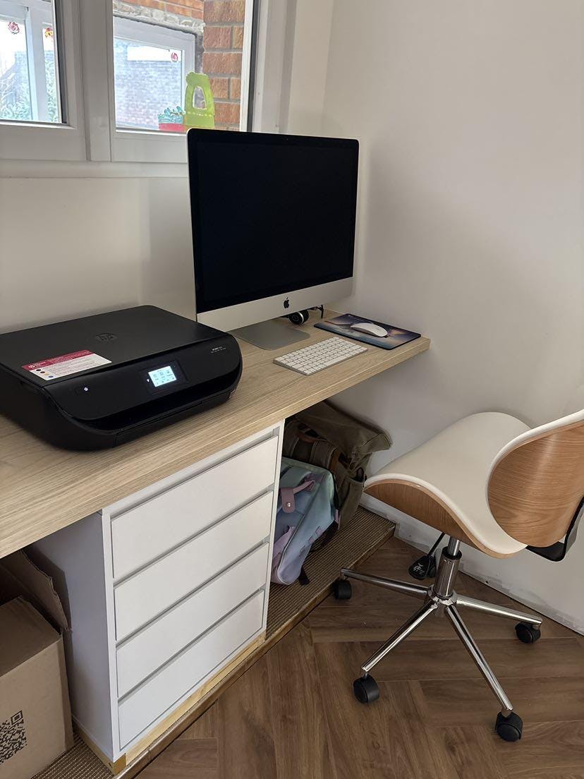 - Sliding drawers offer sufficient storage space for office supplies and files;