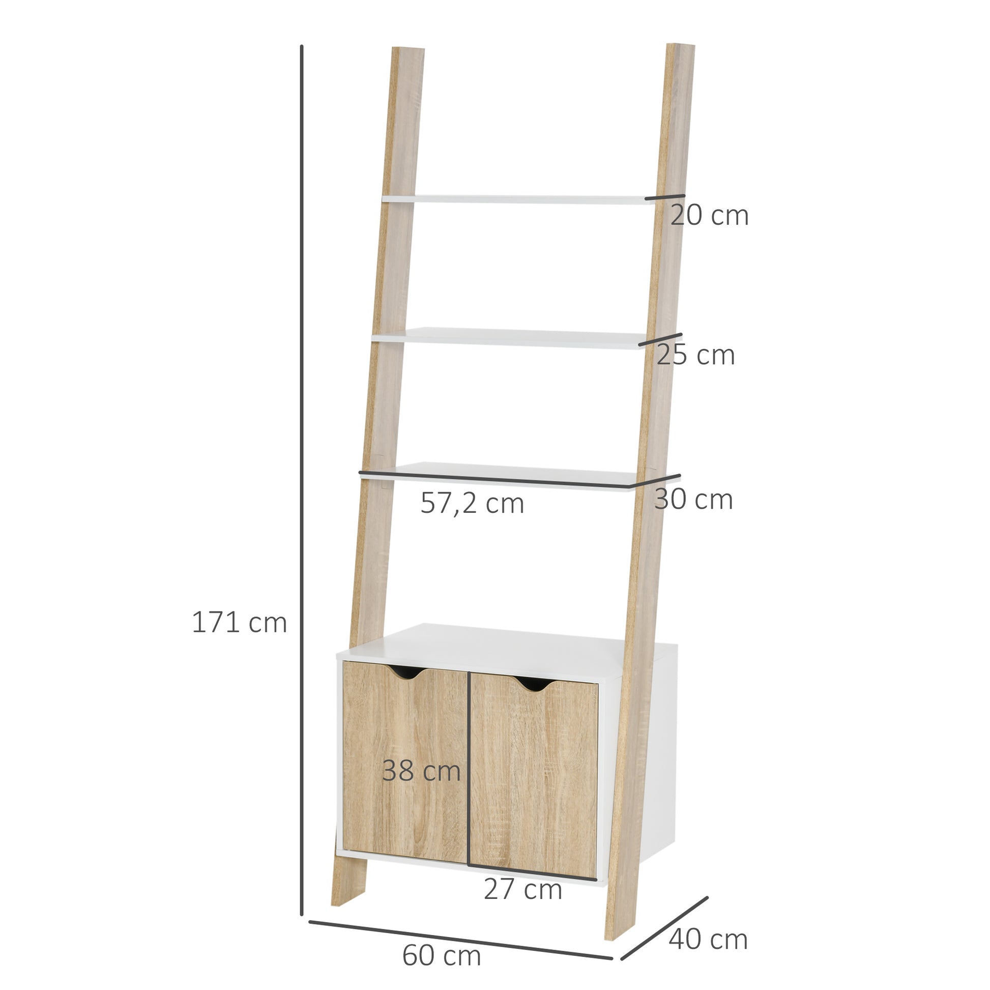 Scandinavian Style Wooden Ladder Bookcase with 3 Shelves and 1 Storage Cabinet Modern 60x40x171 cm Oak and White