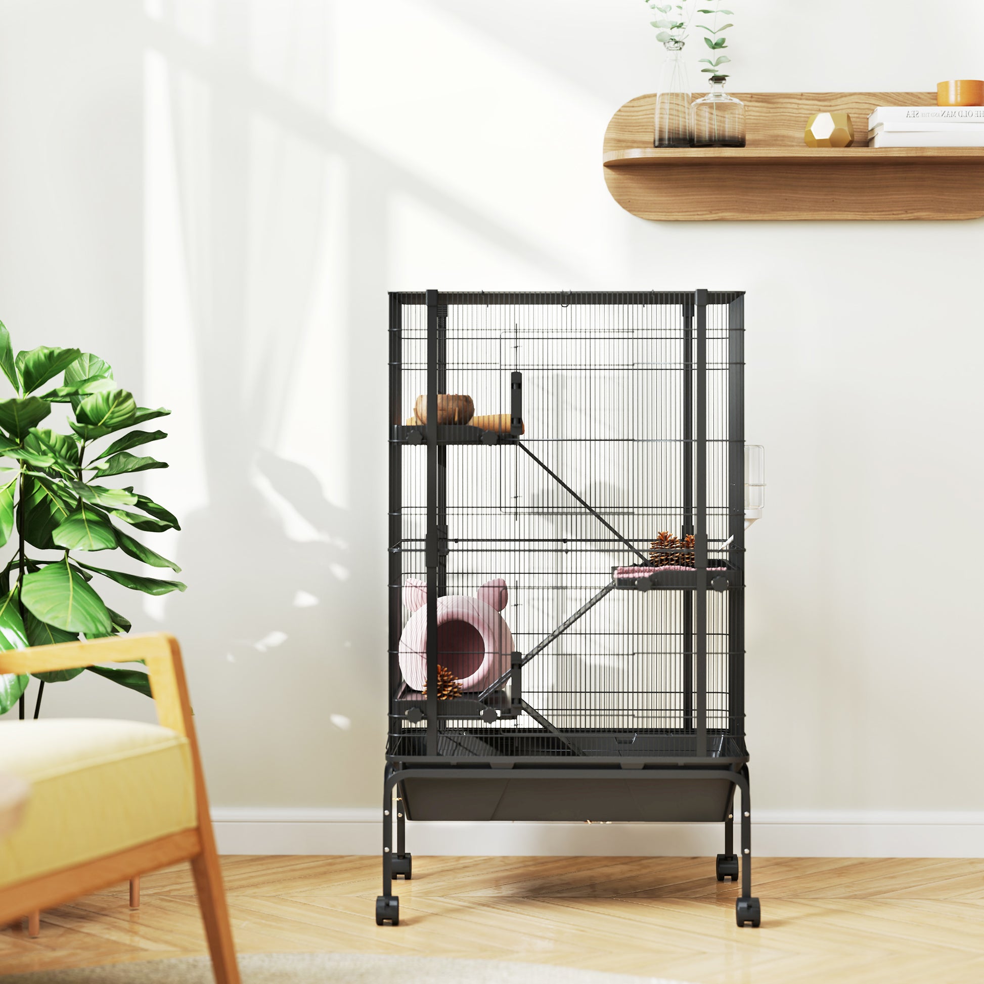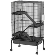Small Animal 4-Level Cage Rodent Cage with Wheels Ramps Bowl Water Bottle and Removable Tray Enclosure for Rabbits Chinchillas Ferrets Guinea Pig 69x44x120 cm Black