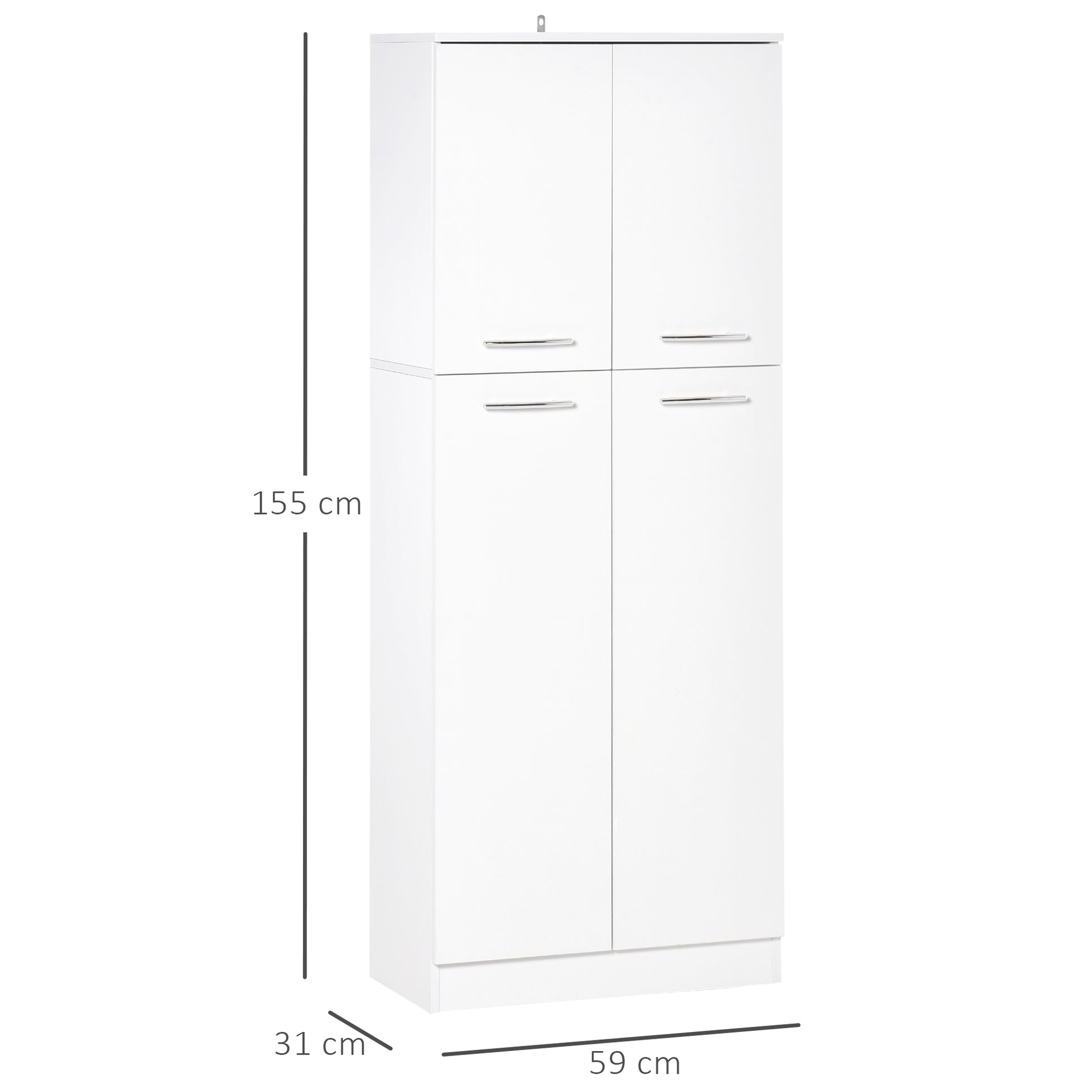 Tall 2-Door Auxiliar Storage Cabinet with 5 Shelves and Adjustable Shelves Modern for Living Room Bedroom Kitchen 59x31x155 cm White