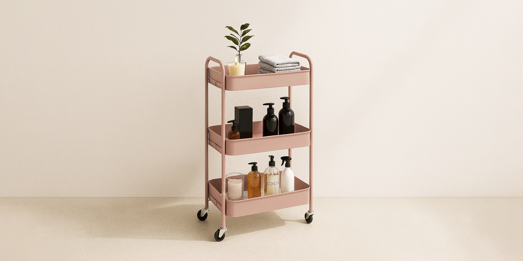 Auxiliary Cart with Wheels Storage Cart with 3 Baskets and Steel Frame for Living Room Bedroom Office Kitchen 17.7"L x 12"W x 31.1"H Pink