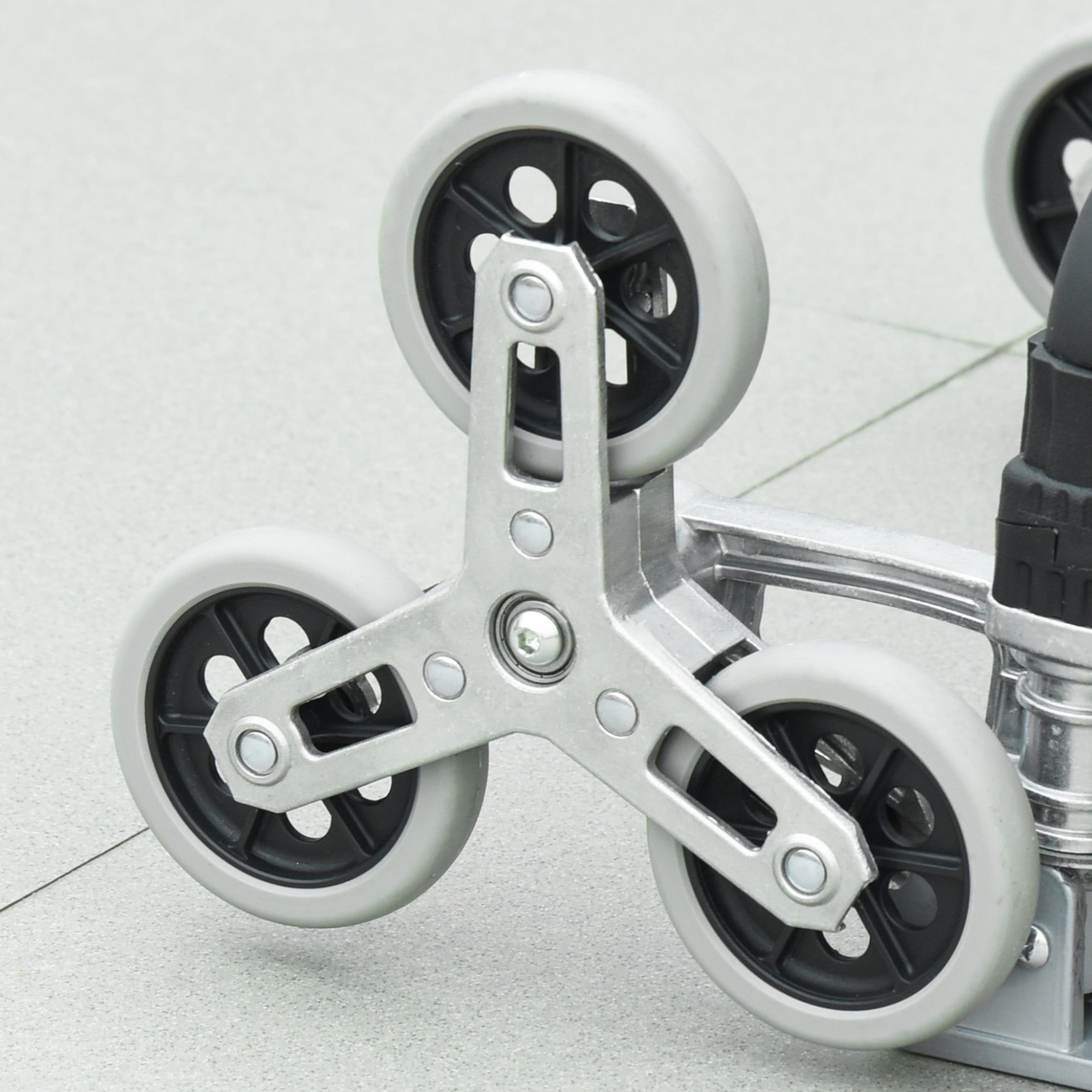 - - 6 ratta disain: See treppide ronija on spetsiaalselt loodud koormate toimetamiseks treppidest ja ebatasastelt pindadelt. See vähendab märgatavalt vaeva.
