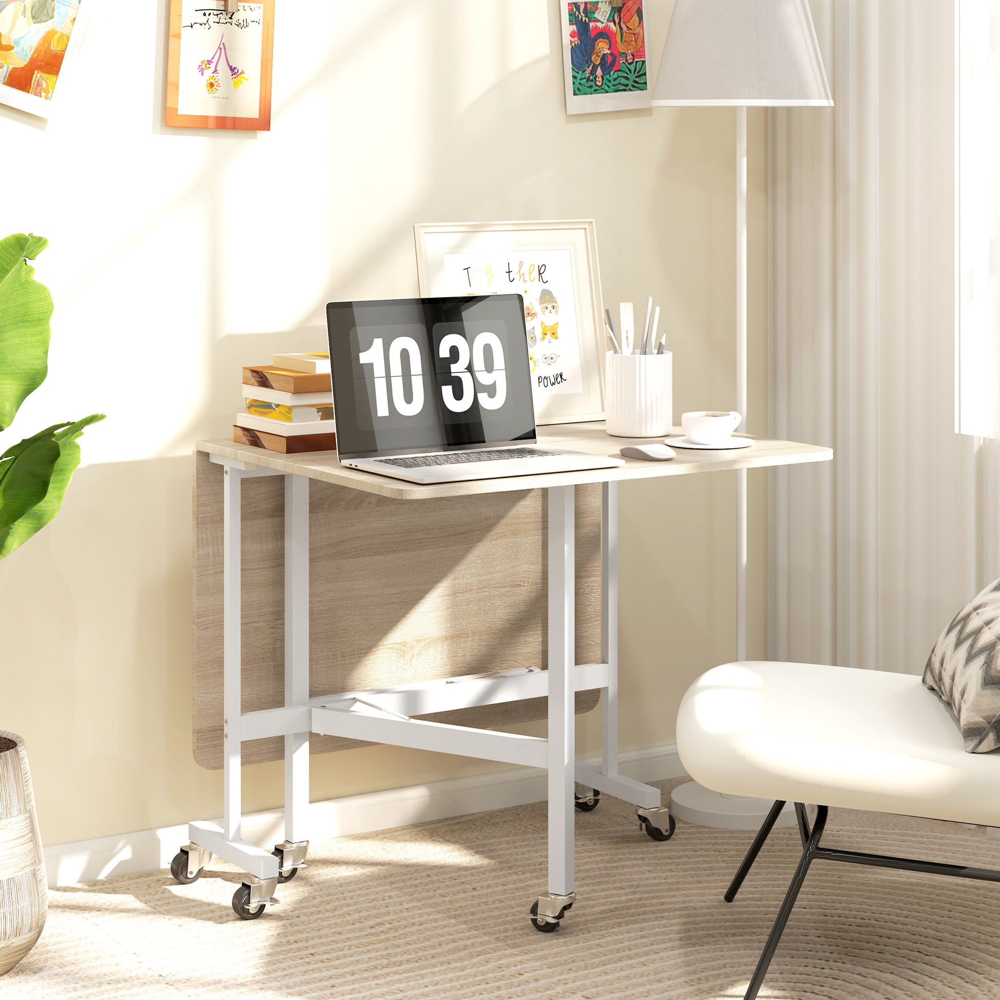 HOMCOM Kokkupandav Toitlustustabel 4-6 Inimesele Rattade ja Langetatavate Lehtedega Kokkupandav Tabel Kööki ja Elutuppa 120x80x73 cm Puidust
