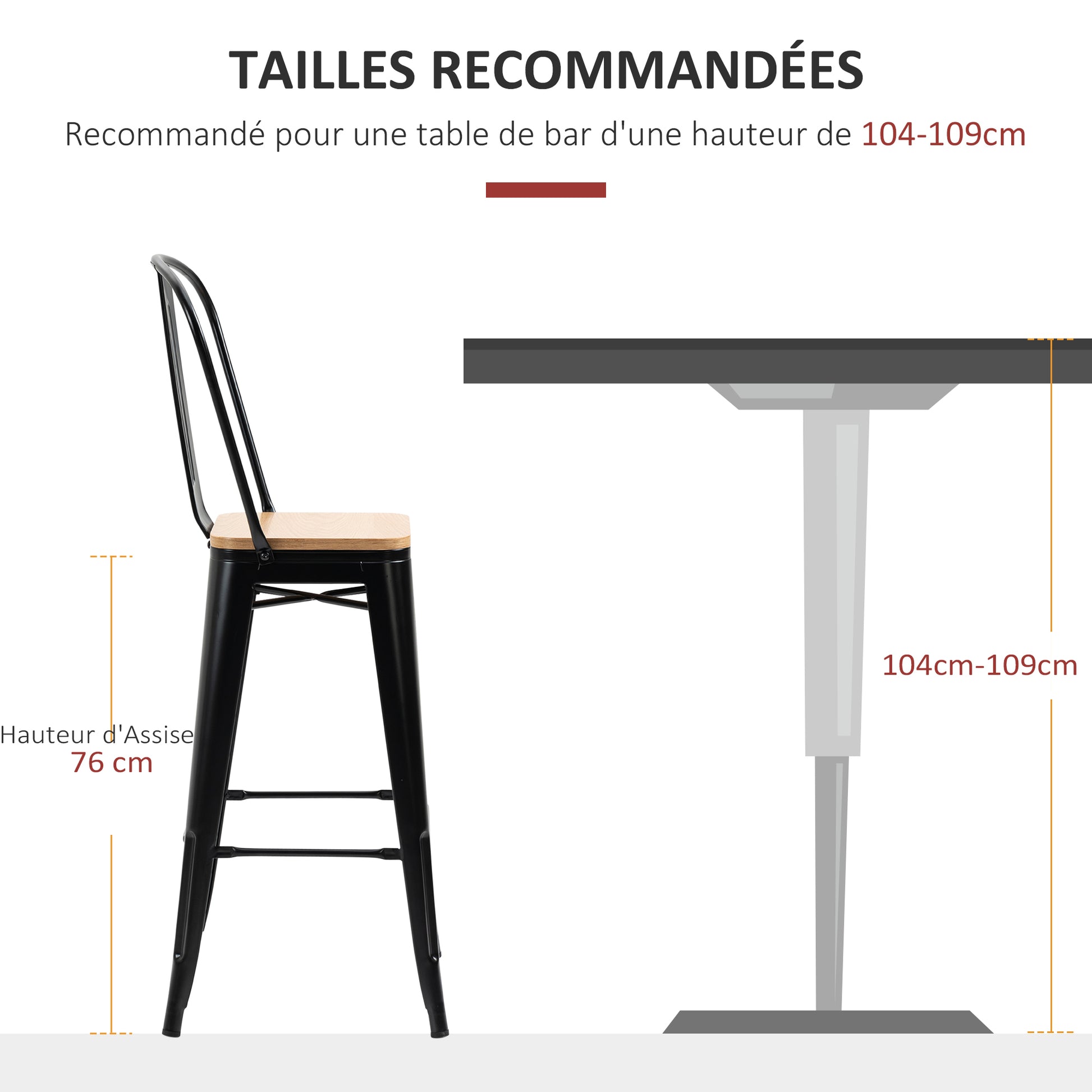 HOMCOM 4-tükine tööstusliku disaini baaripinkide komplekt seljatoe ja jalatugedega, iste kõrgus 76 cm, must metall, hele puitfurniir, mitmekihilised paneelid