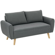 HOMCOM Kahekoha Diivan koos 2 Patsiga, Polsterdatud Diivan 54 cm Sügavate ISTEDEGA, Korduroodist Kahekoha Diivan, Väike Diivan Puidust Raamiga Elutuppa, Magamistuppa või Kontorisse, 145 x 75 x 78 cm, Tumehall