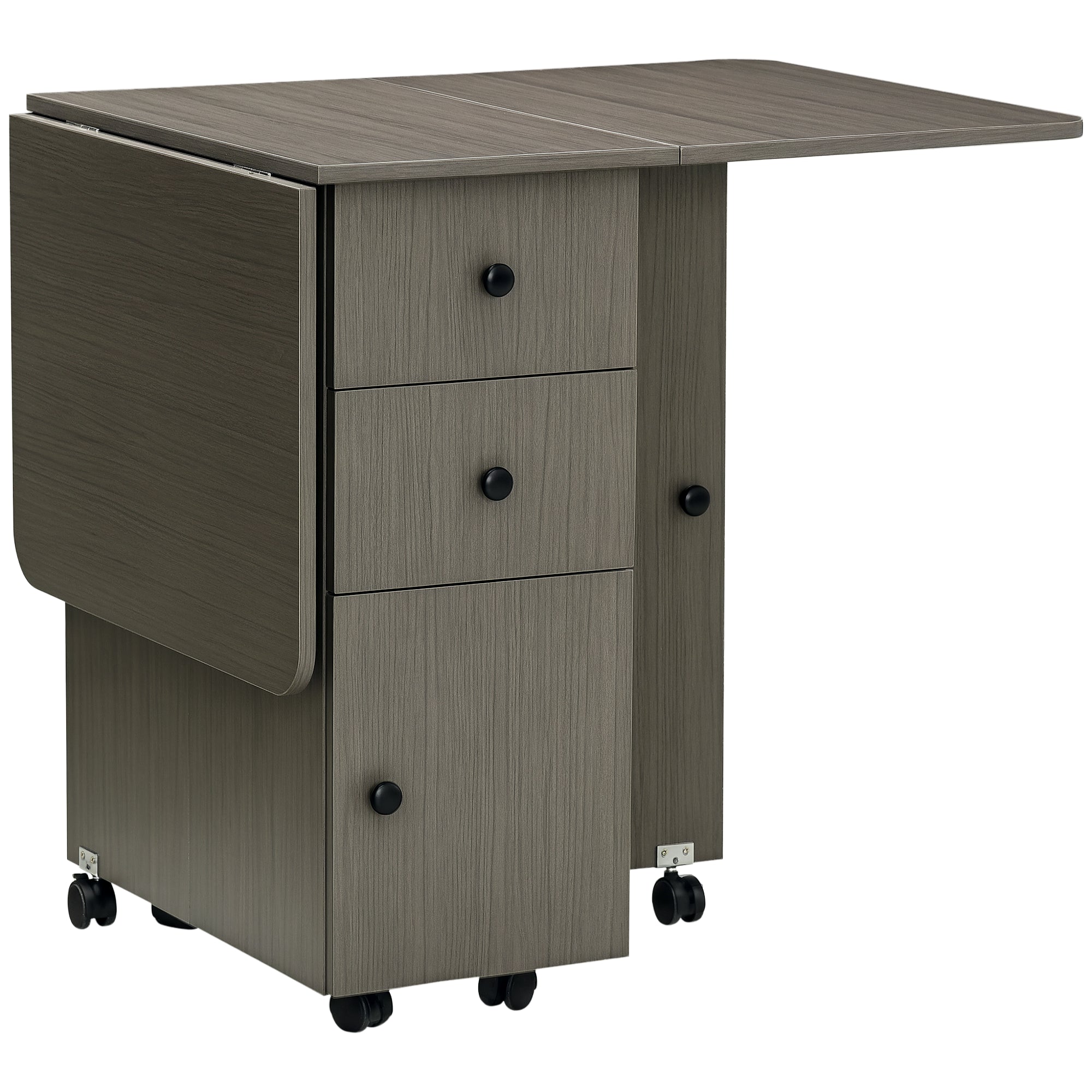 HOMCOM Kokkupandav Köögilaud - Kokkupandav Söögilaud 2 Kokkupandava Taldriku, 2 Sahtli, 1 Kapi ja 1 Säilitushyllega - 120 x 60 x 76.5 cm - Tumedat Hall