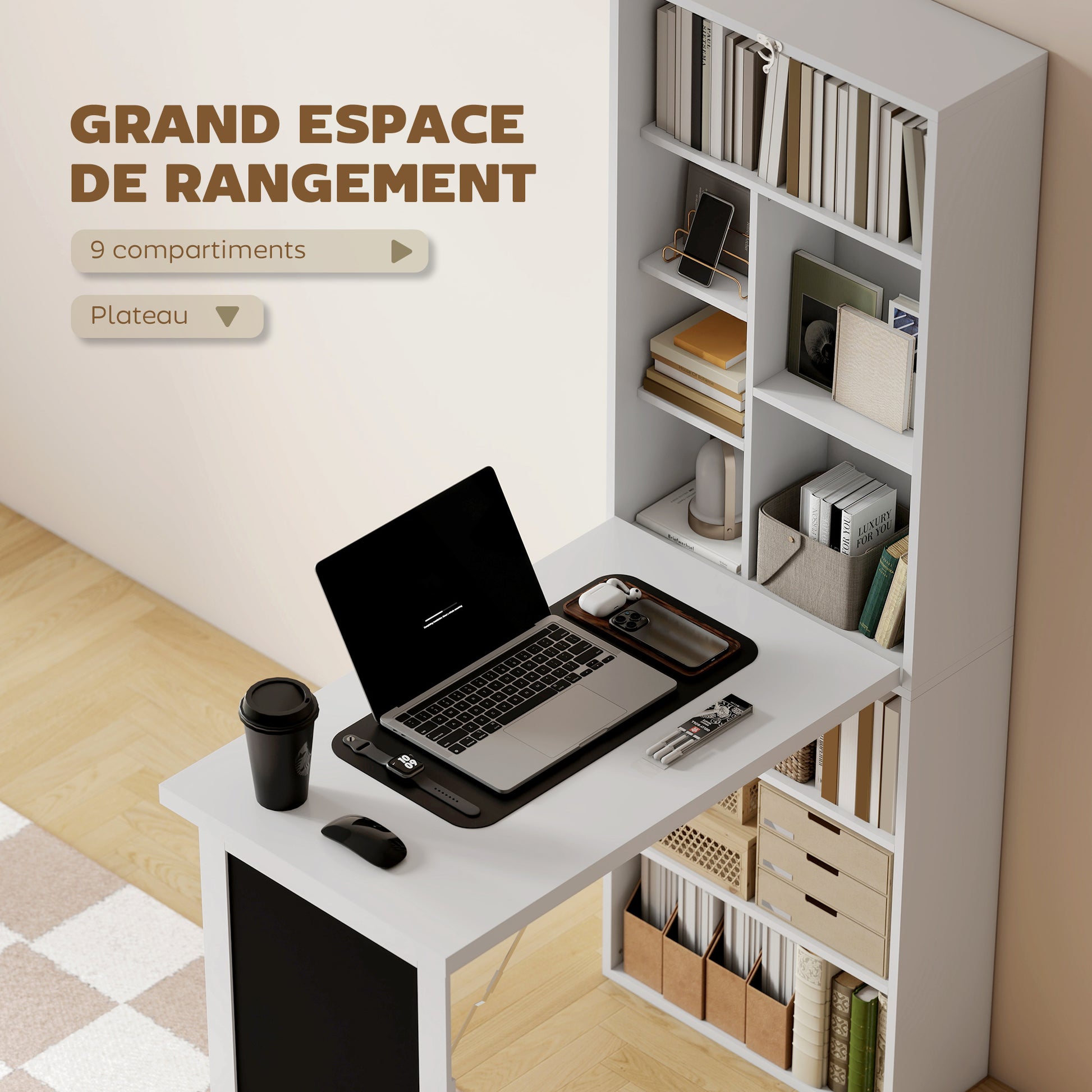 HOMCOM Kokkuvolditav Arvutitool, Laua ja Hoiustamisega, Seinapealne Kokkuvolditav Laua, Raamatukapp, Tööjaam, Tahvel, ja Reguleeritav Riiul, Valge