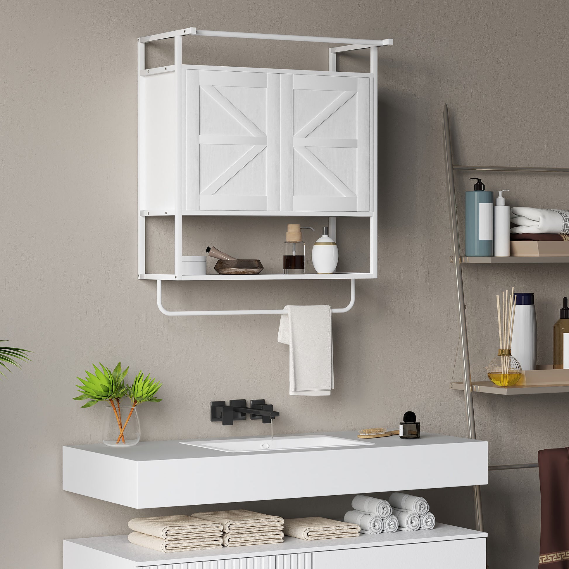 HOMCOM Seinale paigaldatav Kapike Vannituppa Üksikasjalik Vannitoa Kapike Ladustamisriiul Rätiku Tukk 63x34x75 cm Valge