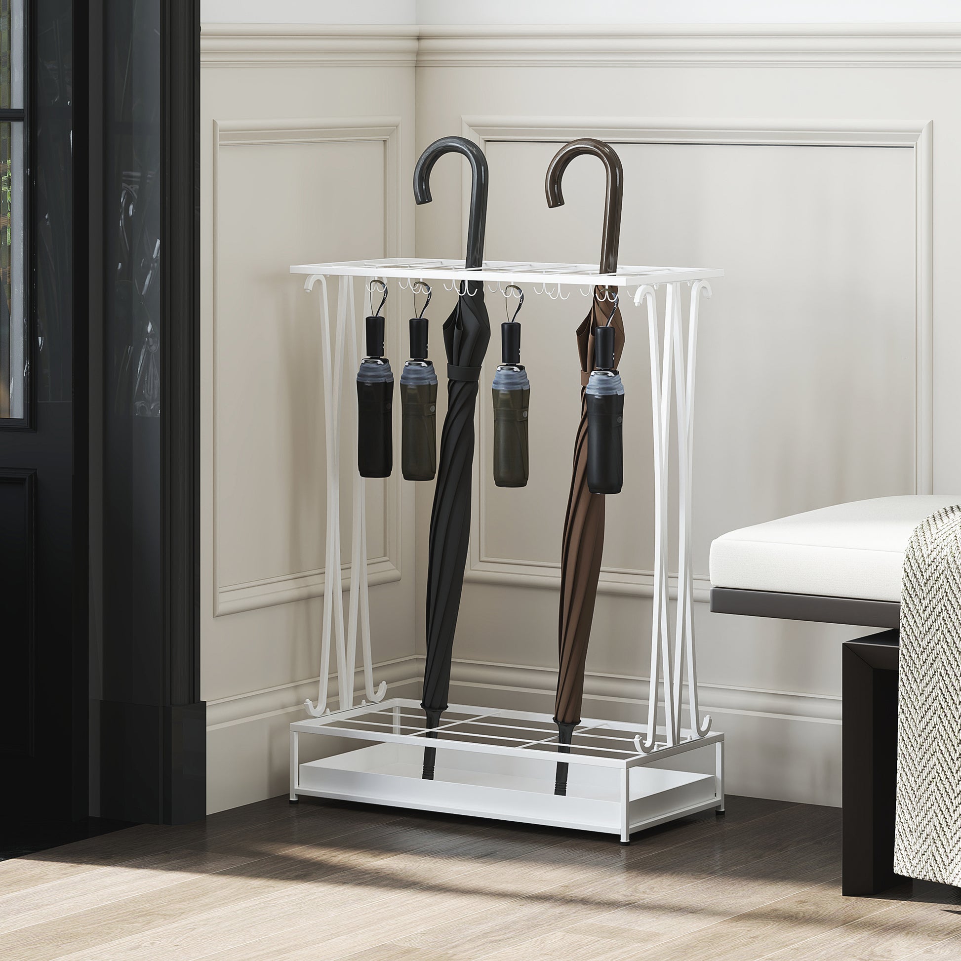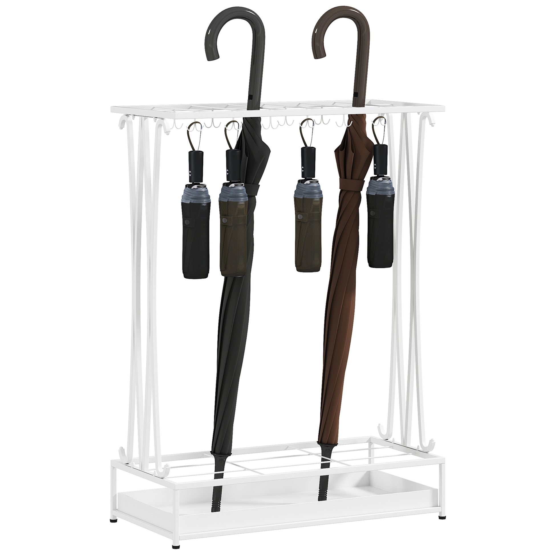 HOMCOM Moodne Ruutuline Üksikvarju Stendam Terasest Üksikvarju Hoidja 24 Konksu ja 21 Kohaga Eemaldatava Tilgutamisalusega Üksikvarju Stendam Esikusse ja Kontorisse 50x24x68 cm Valge