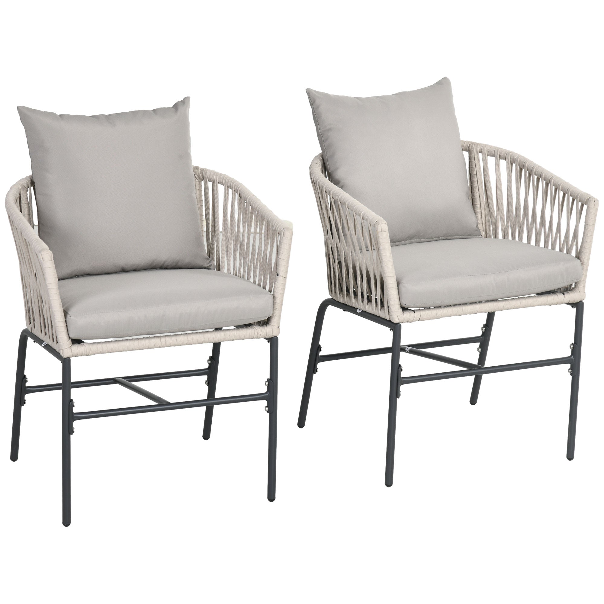 Outsunny 2x Aia Tooli Komplekt Padjaga, Boho Stiilis Terrassi Toolid, Metallraam, 57 x 60 x 71 cm, Bež