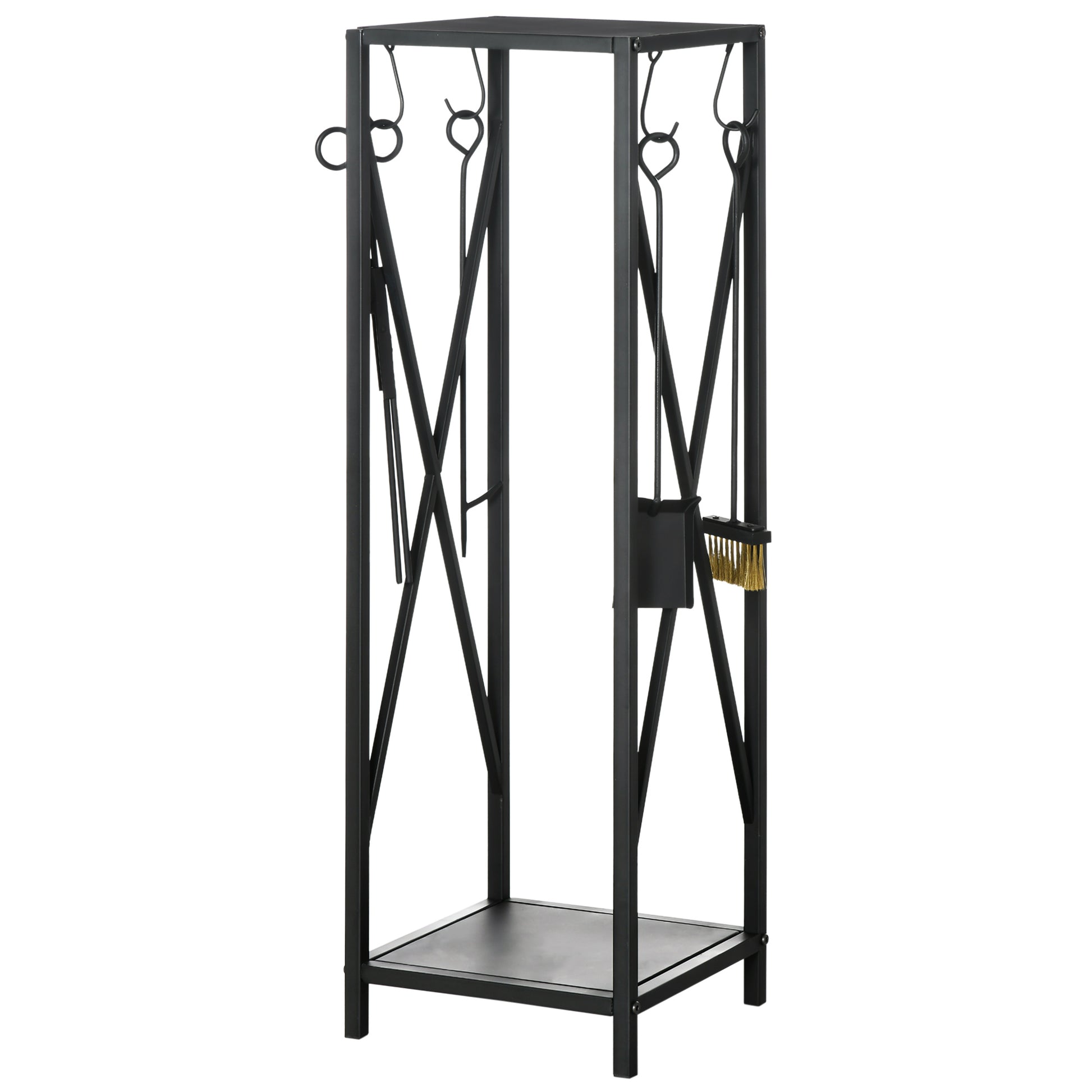 Outsunny Küttepuit Riiul - Veeru Küttepuit Rack - Mitmed Aksessuaarid mõõtmed 34L x 34W x 111H cm Metall Must