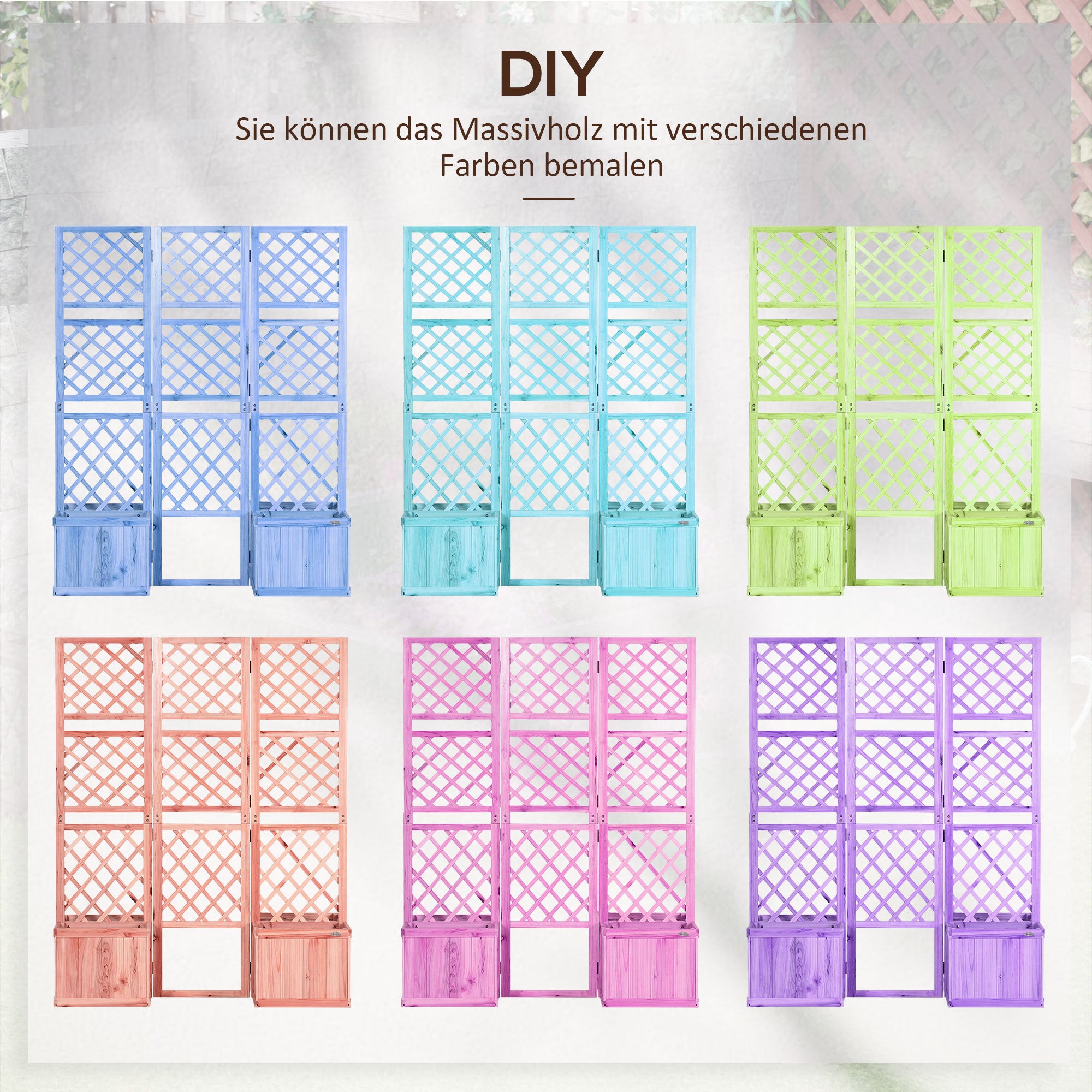 Outsunny tõstetud voodi koos kokkupandava trellisega, taimede kast koos privaatsuscreeniga, 133 x 165 cm ruumijagaja koos 4 lillekastiga, rõdu jagaja, valmistatud mändidest, looduslik