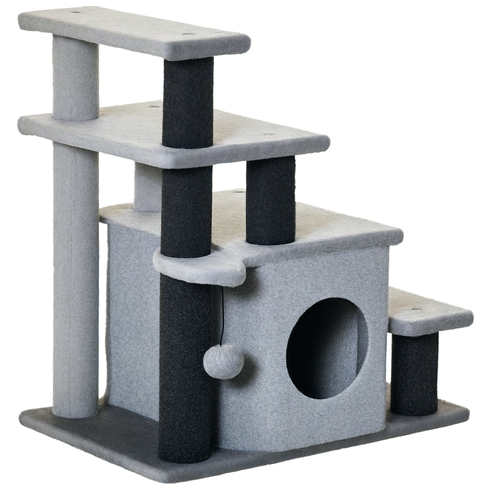 - - Kraapimispulk ja maja: Sinu kass saab rõõmsalt astmetelt üles ronida ja mugavalt oma ümbrust jälgida.