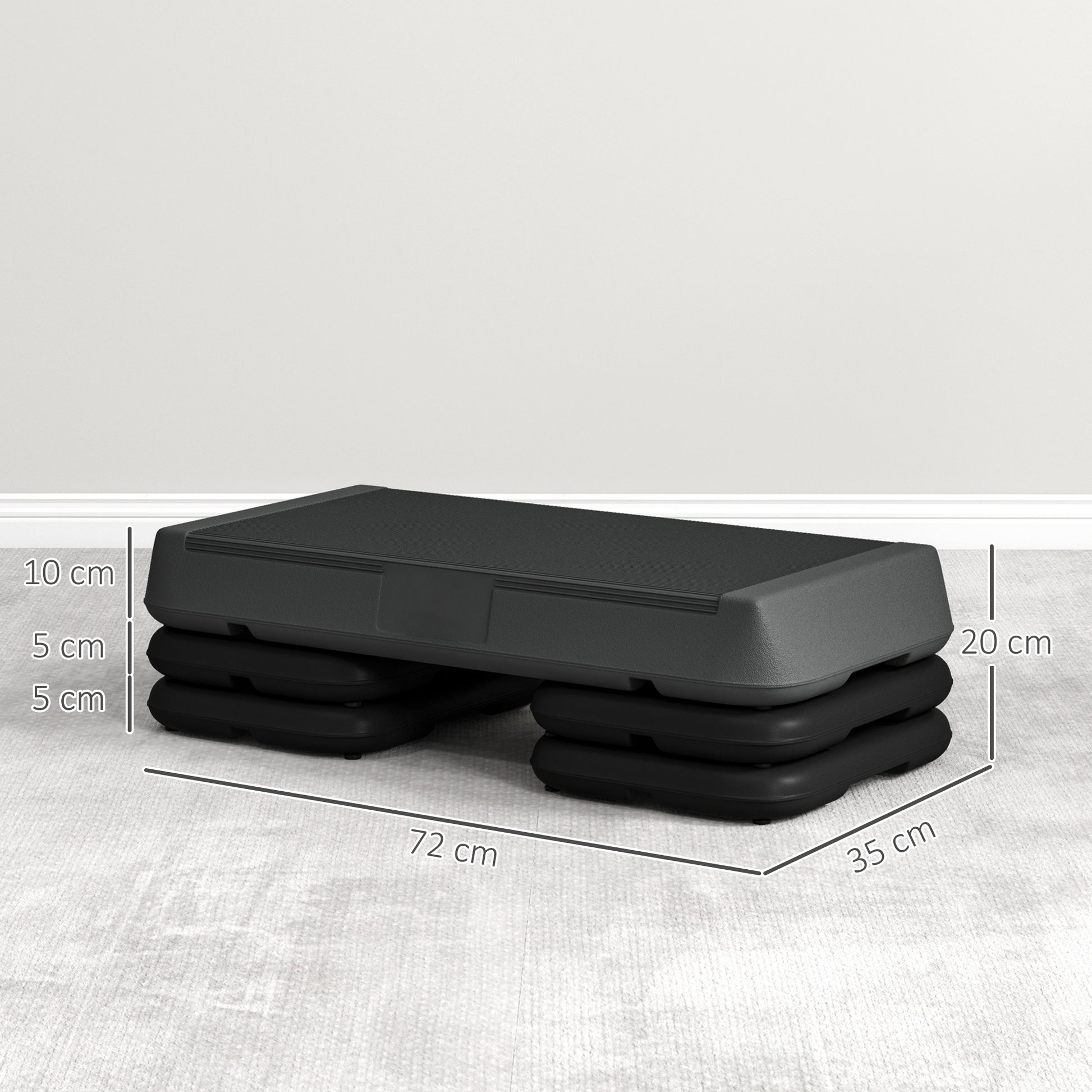 SPORTNOW Reguleeritava Kõrgusega 3 Taset Aerobne Fitness Stepper 10/15/20 cm Libisemisvastane Plastpind, Hall