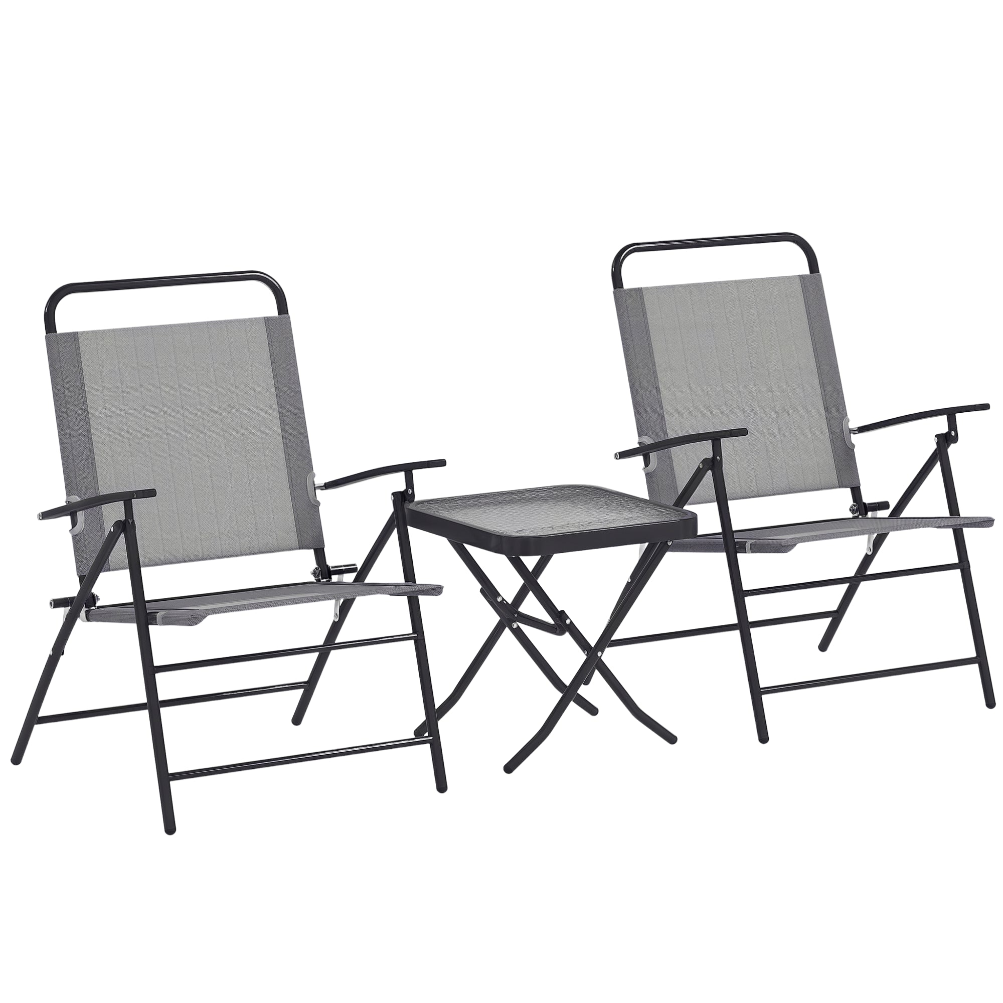 Outsunny 3-osainen Terassiulkopöytä ja Tuolisarja Kokoontaitettava Puutarhakaluste Säädettävällä Selkänojalla, Lasikannella ja Teräsrunko Harmaa