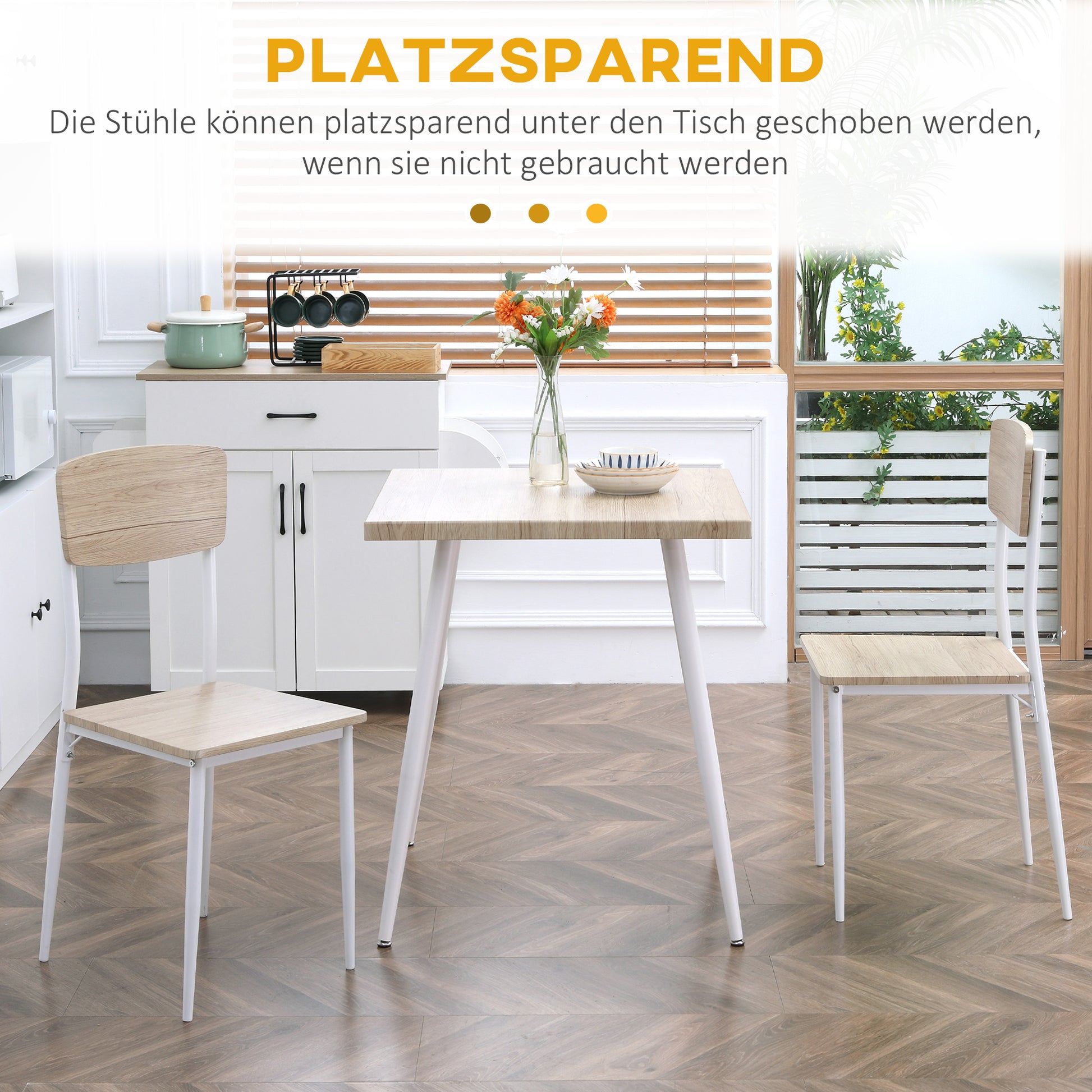 HOMCOM 3-osainen ruokailusetti: Ruokapöytä 2 tuolilla, metallikehyksinen ruokailuryhmä, luonnollinen + valkoinen