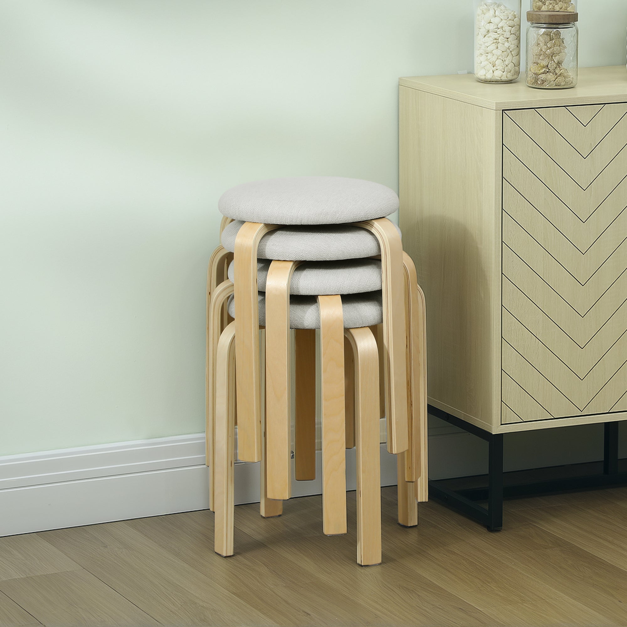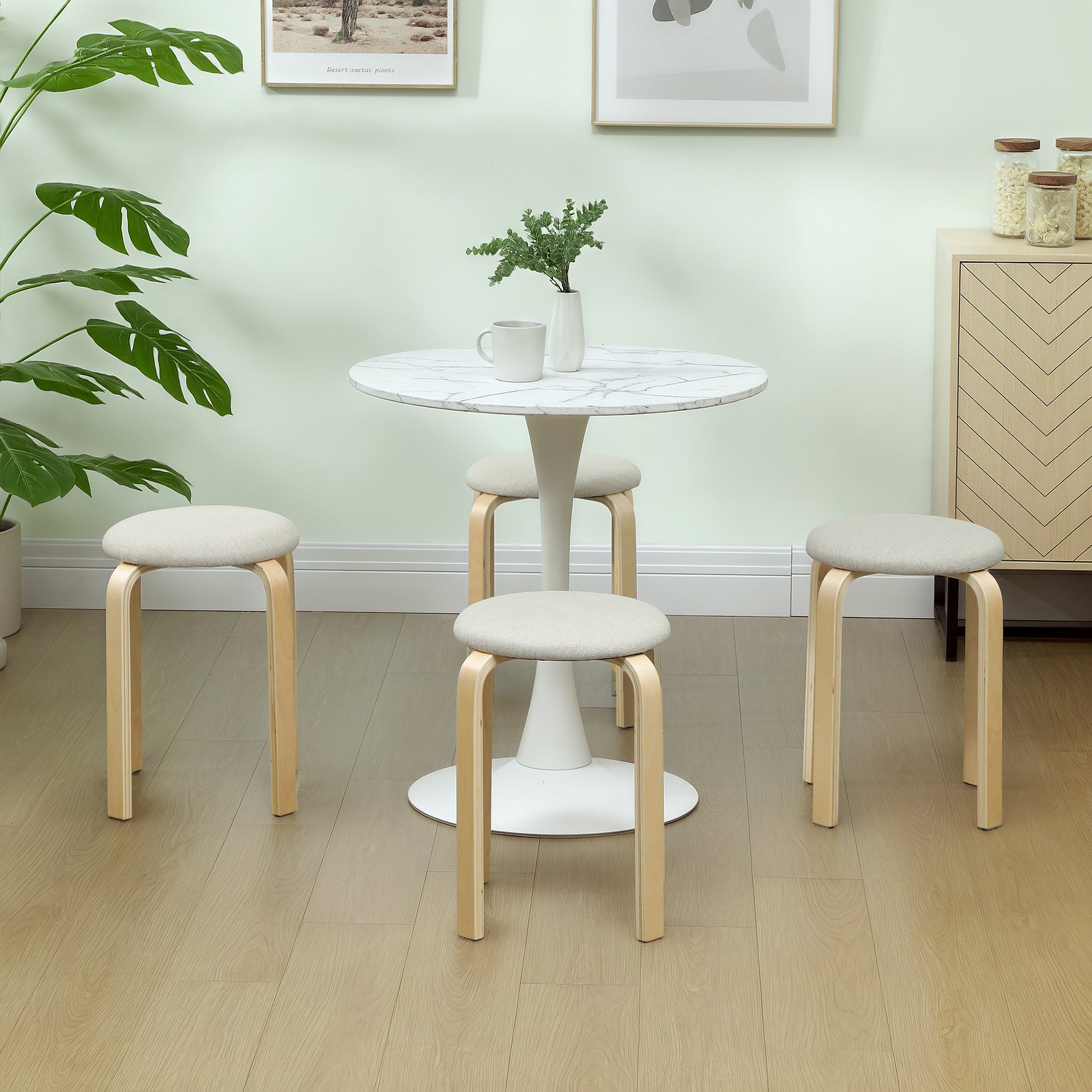 HOMCOM 4 Kappaleen Ruokapöydän Jakkarasetti, Pinottavat Pyöreät Jakkarat, Kankaan näköiset Keittiöjakkarat, Pehmustetut Jakkarat Ruokailuhuoneeseen, Olohuoneeseen, Keittiöön, Kerma Valkoinen