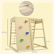 HOMCOM 5-in-1 Leikkialue Kiipeilysetti, jossa on Keinu, Vaaka Portaikko, Kiipeilyverkko, Kiipeilyseinä, Kiipeilyleluja lapsille, 120 x 105 x 120 cm, Luonnonpyökkiä