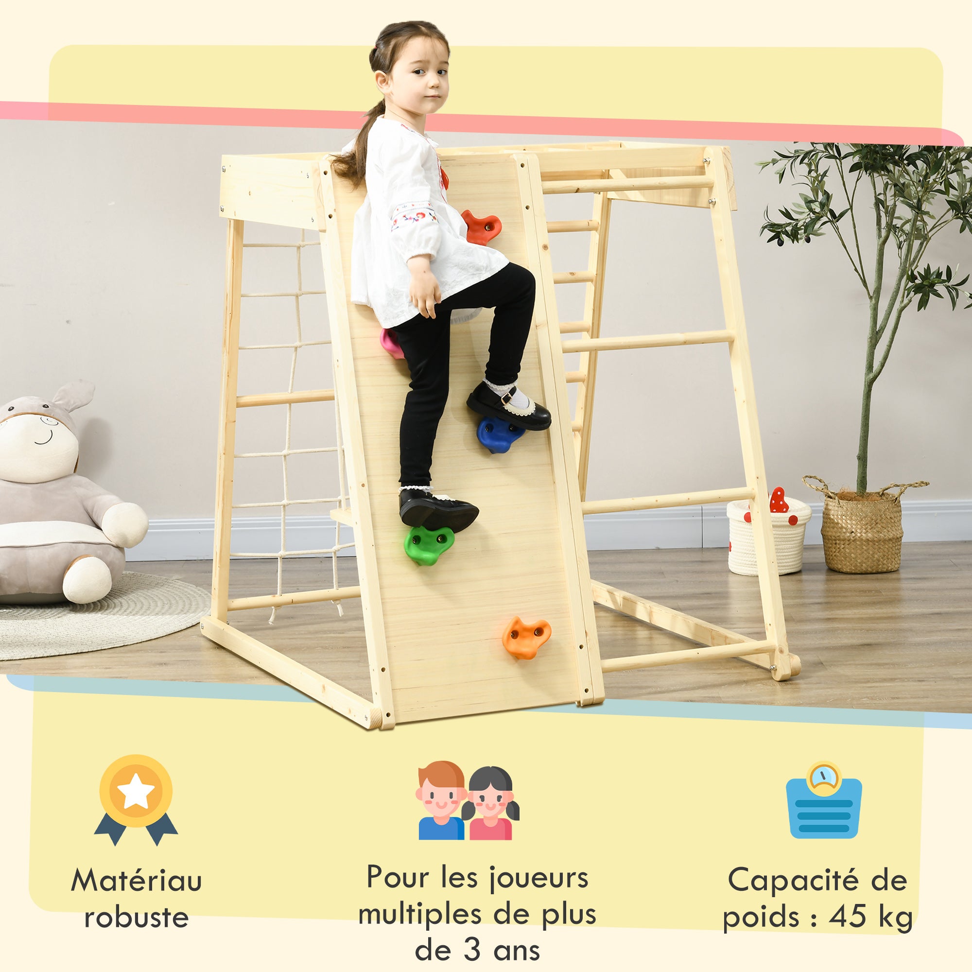 - - TAKUU HAUSKUUDEN: Kiipeilyseinä, kiipeilyverkko, puuportaikko, ylävaaka portaikko ja keinu tekevät tästä lelusta täydellisen, joka viihdyttää pieniä lapsia tuntikausia